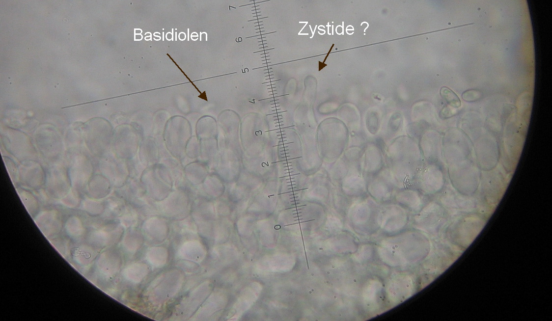 Hymenium mit flaschenförmigen Zystiden und leicht dickwandigen Basidiolen