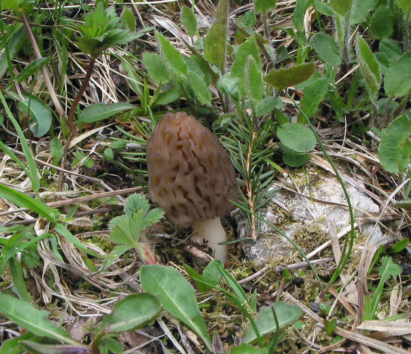 So auf halber (Berg)Höhe – es wurde steil im Gelände – schob sich eine Spitzmorchel aus dem Boden