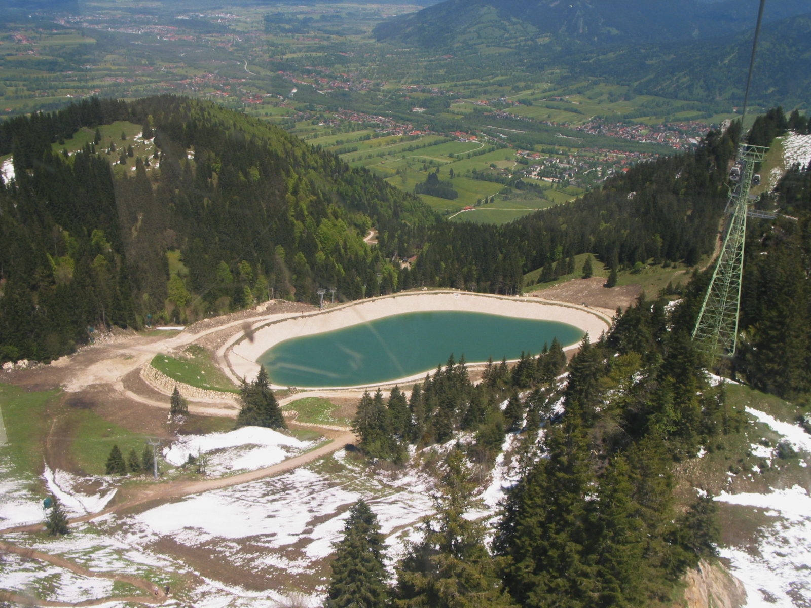 Ach Claudia, der Stausee ist ein künstlich angelegtes Becken um die Wasservorräte für die Schneekanonen der Skiliftbetreiber zu sichern. Der See ist erst vor ein paar Jahren errichtet worden und die Natur hat es noch nicht geschafft die Narben zu kaschieren.