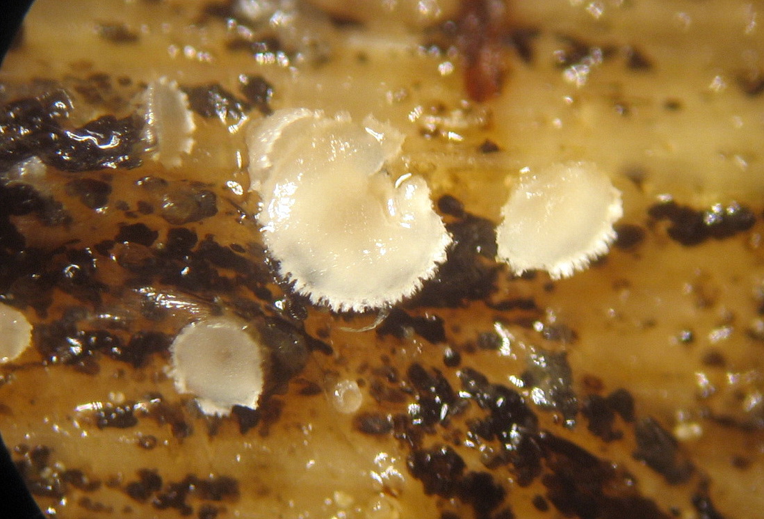 da komm ich auf eine Vibrissea rubicola, ob das aber schon der gültig beschriebene Name für das Pilzchen ist, weiß ich nicht.