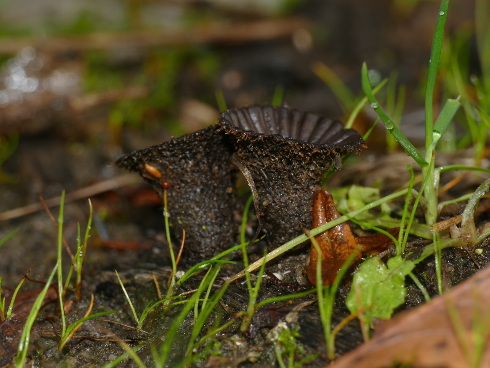 Wie wäre es mit Lacrymaria spec. (Saumpilz), zu gerne würde ich die gecheckten Lamellen prüfen, aber das geht wohl nicht mehr.