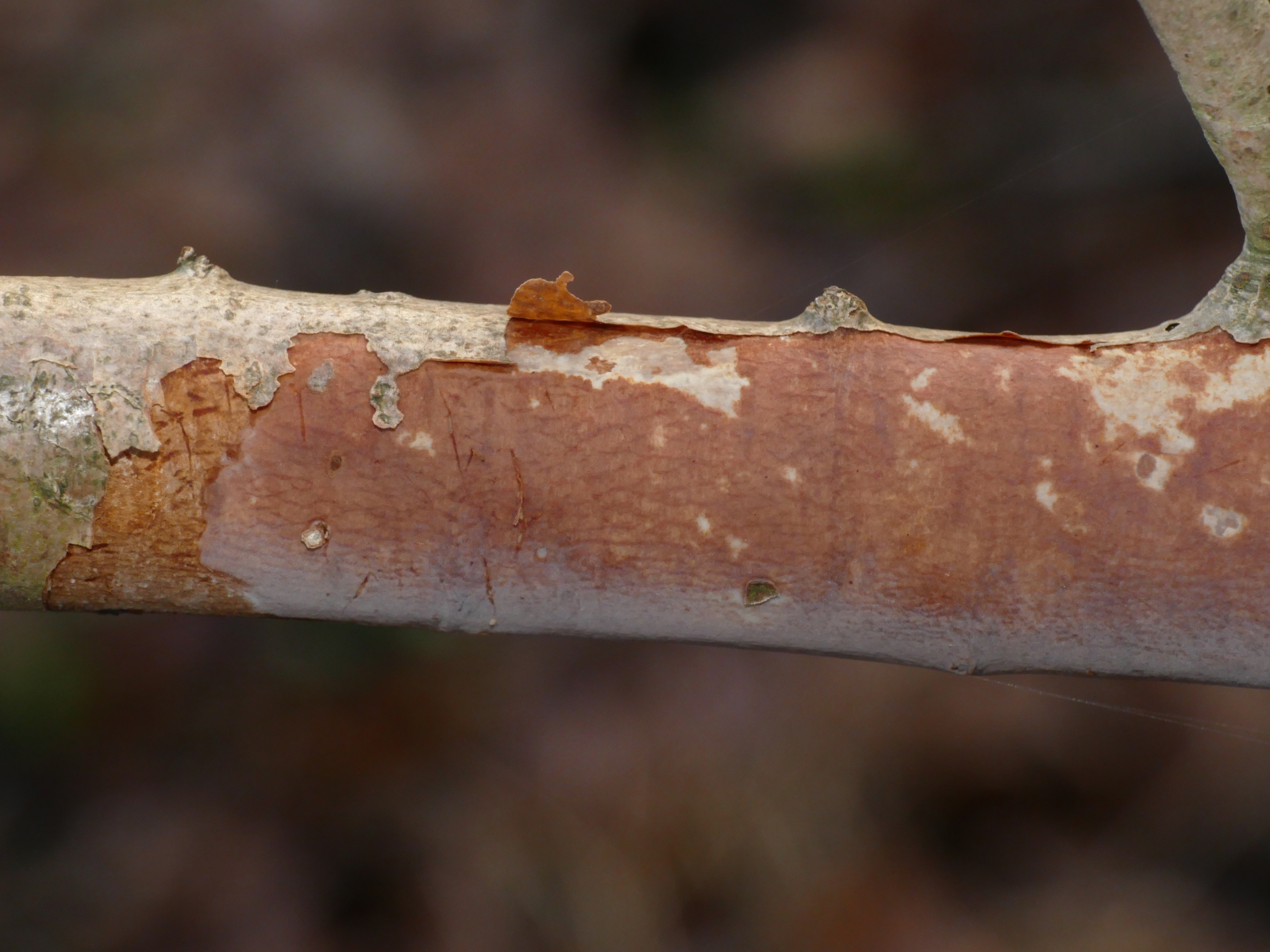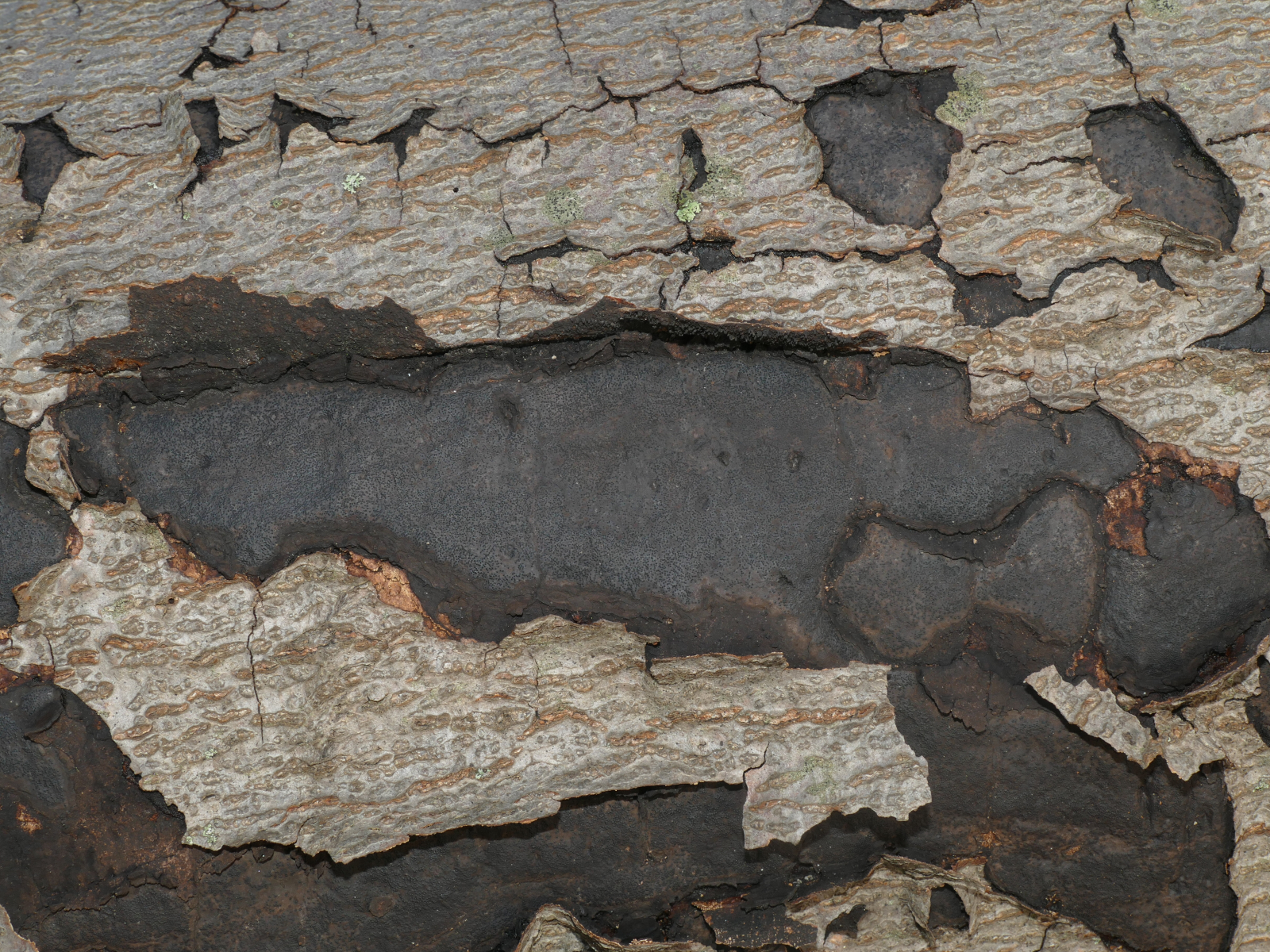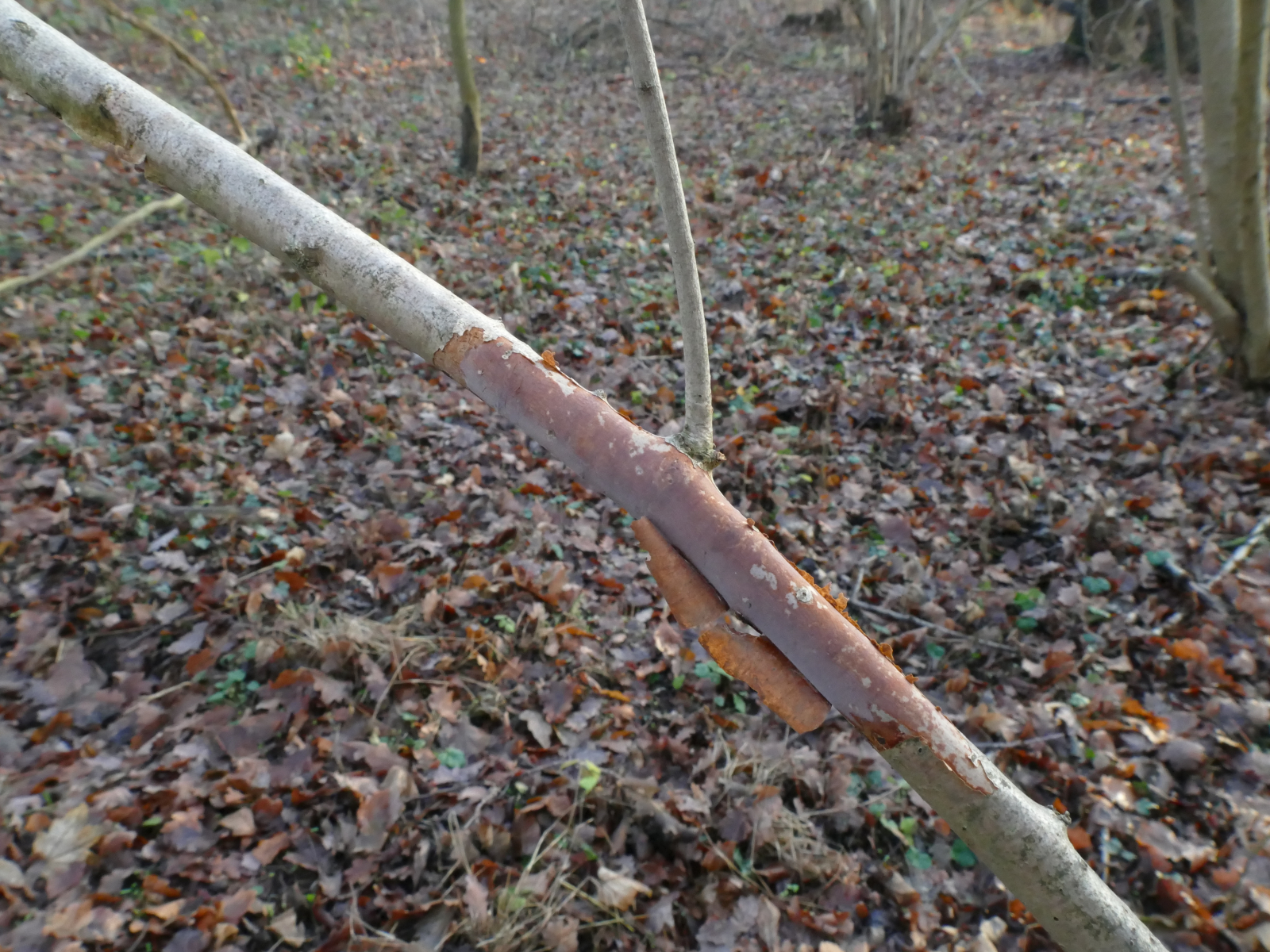 (2) An einem Ast eines Haselnussstrauchs. Ich denke hier an die Gattung "Vuilleminia" (wegen des Haselnusssubstrates vllt. dann Vuilleminia coryli, der "Haselrindensprenger").