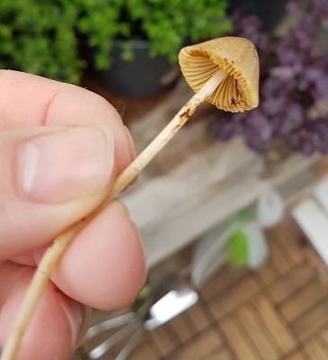 Heute wollte ich mein kleines Gewächshaus, welches auf der Dachterrasse steht, in Augenschein nehmen und musste feststellen, dass sich Pilze "eingeschlichen" haben. Der ganze Rucola war durchsetzt mit kleinen, weißen Stängeln mit braunen, kegelförmigen Hüten. Ich habe mich gleich gefragt, ob der Salat noch genießbar ist?