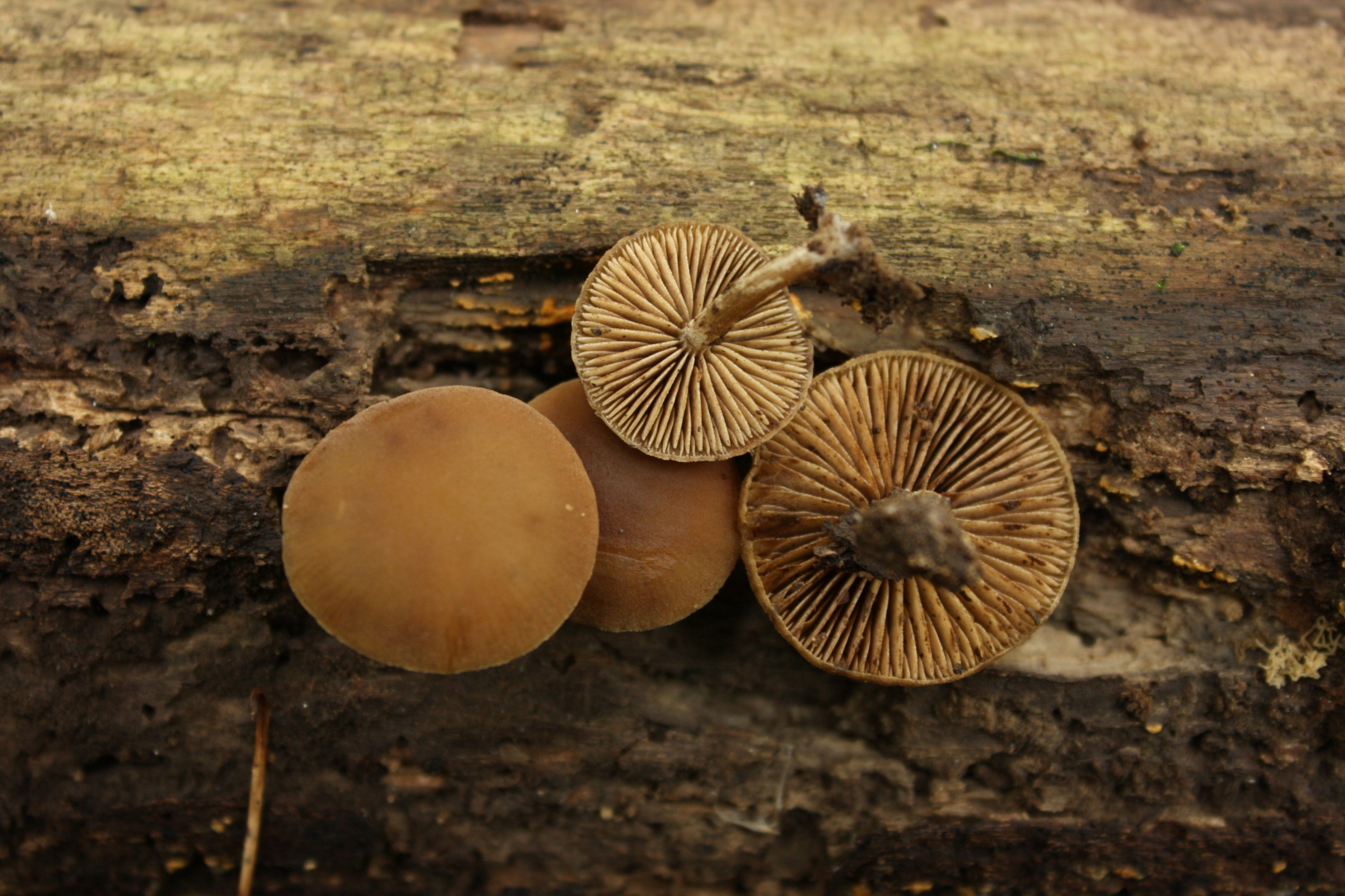 Ich finde Xyobulus frustulatus ist einer der schönsten Pilze an Holz - mir gefällt, wie er so schön mosaikartig das Holz überzieht, so schöne Strukturen.