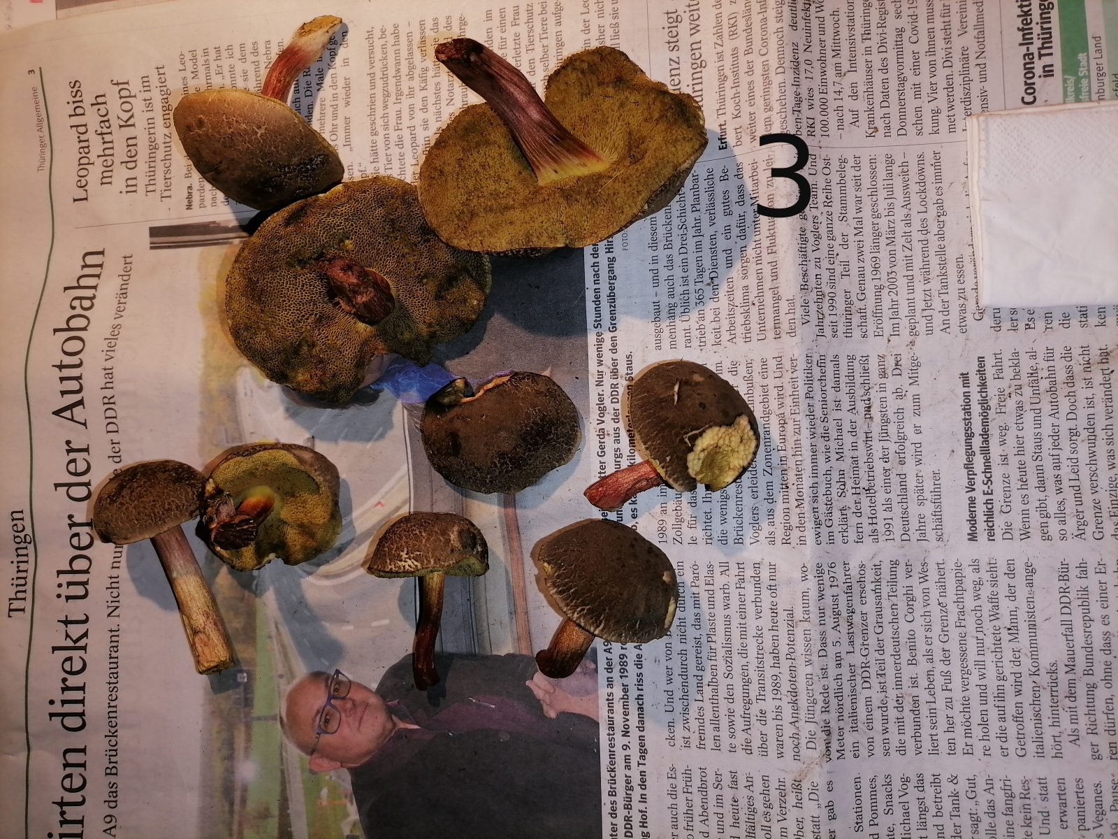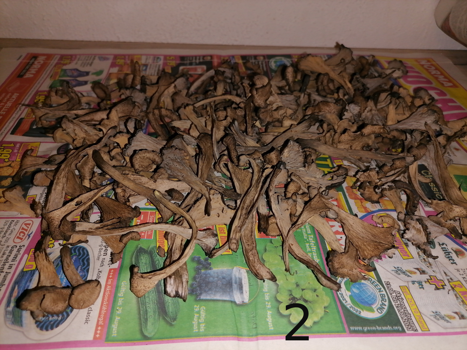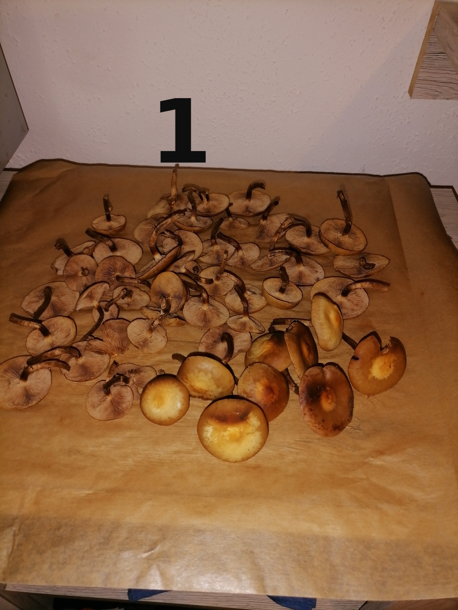 Die Rotfüße sind entsorgt. Am Meisten habe ich mich wohl über die Herbsttrompeten gefreut. Geht alles zum Trocknen.