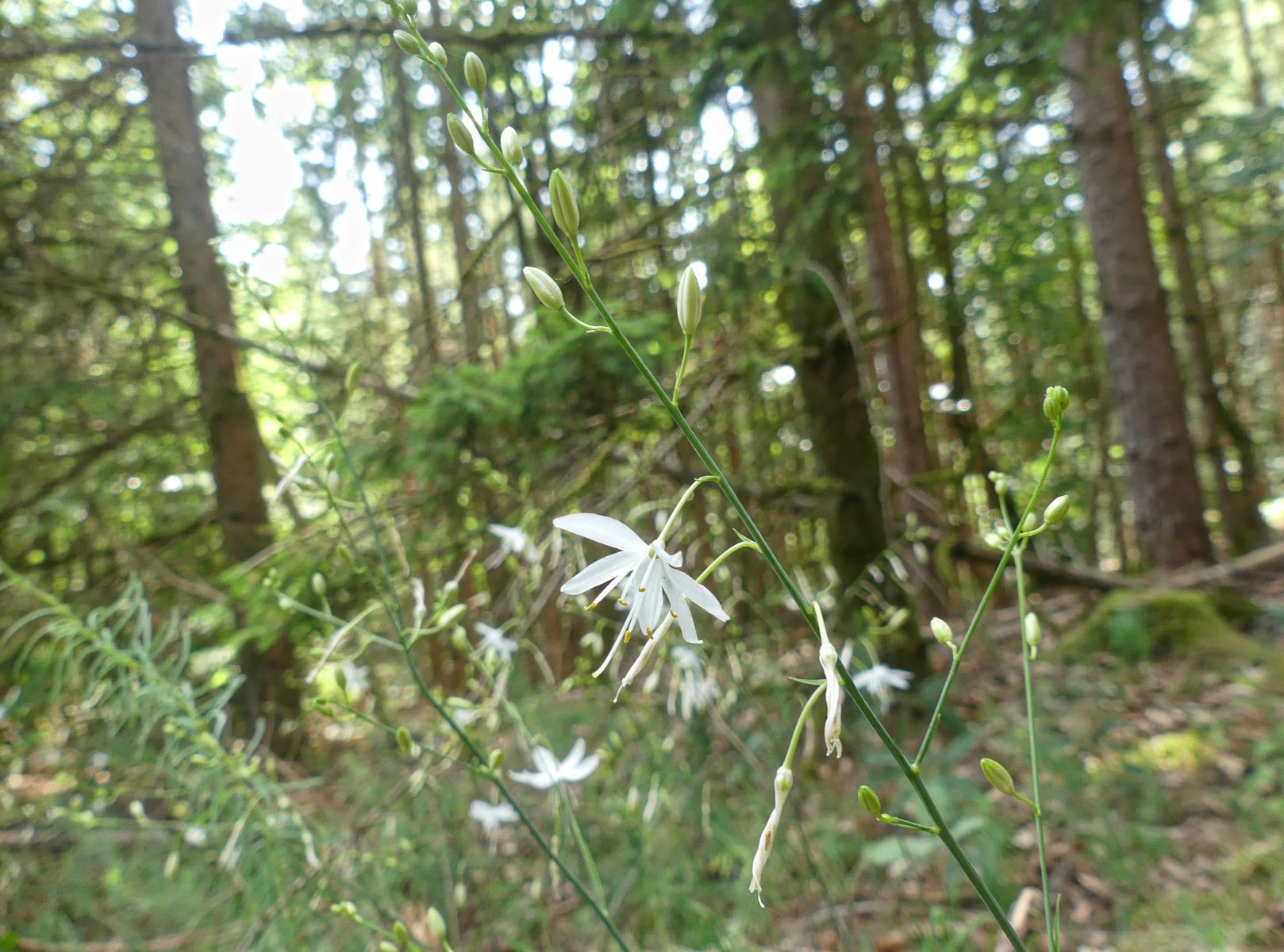 Mitten im Wald die Rispige Graslilie (Anthericum ramosum)