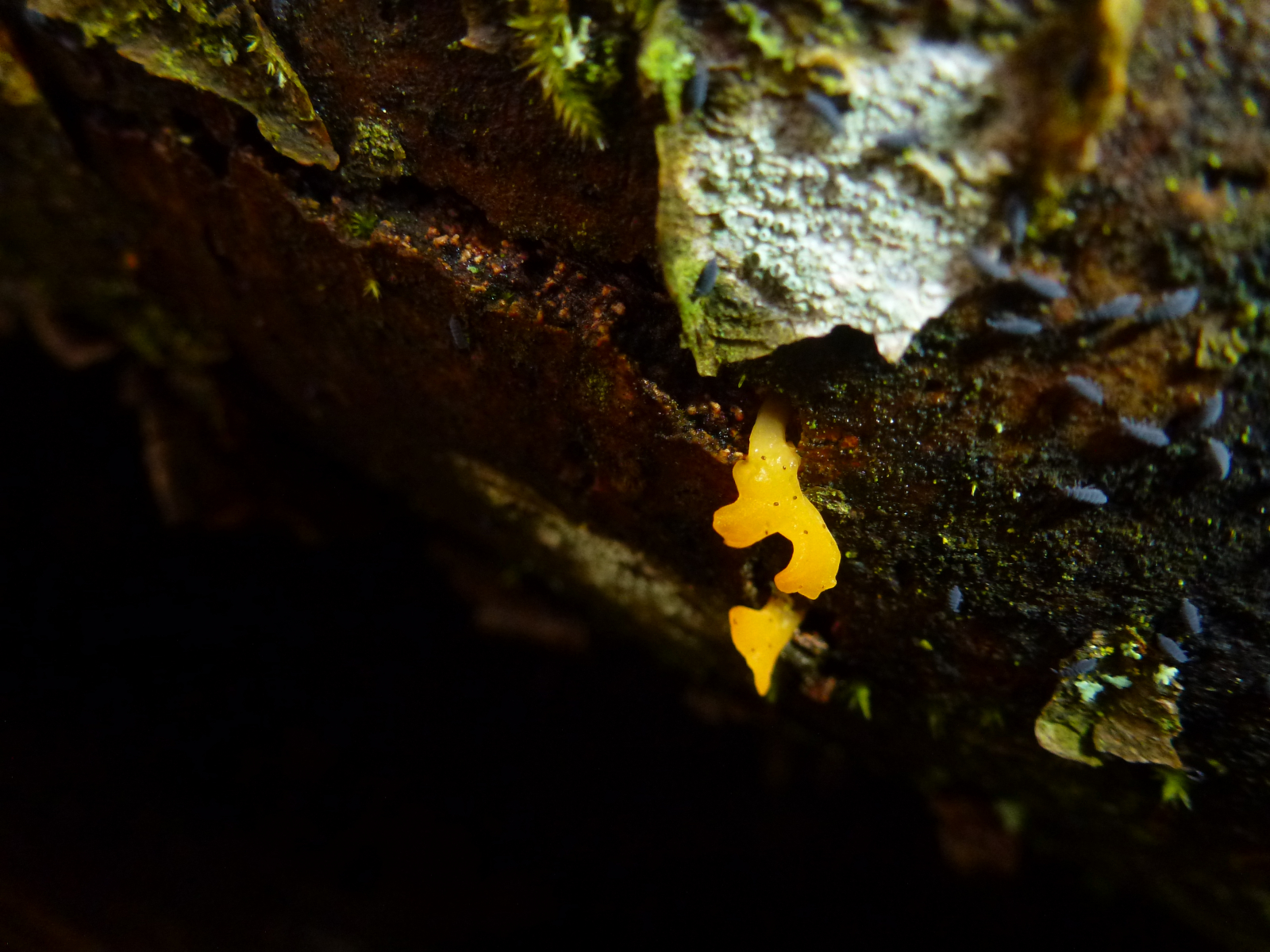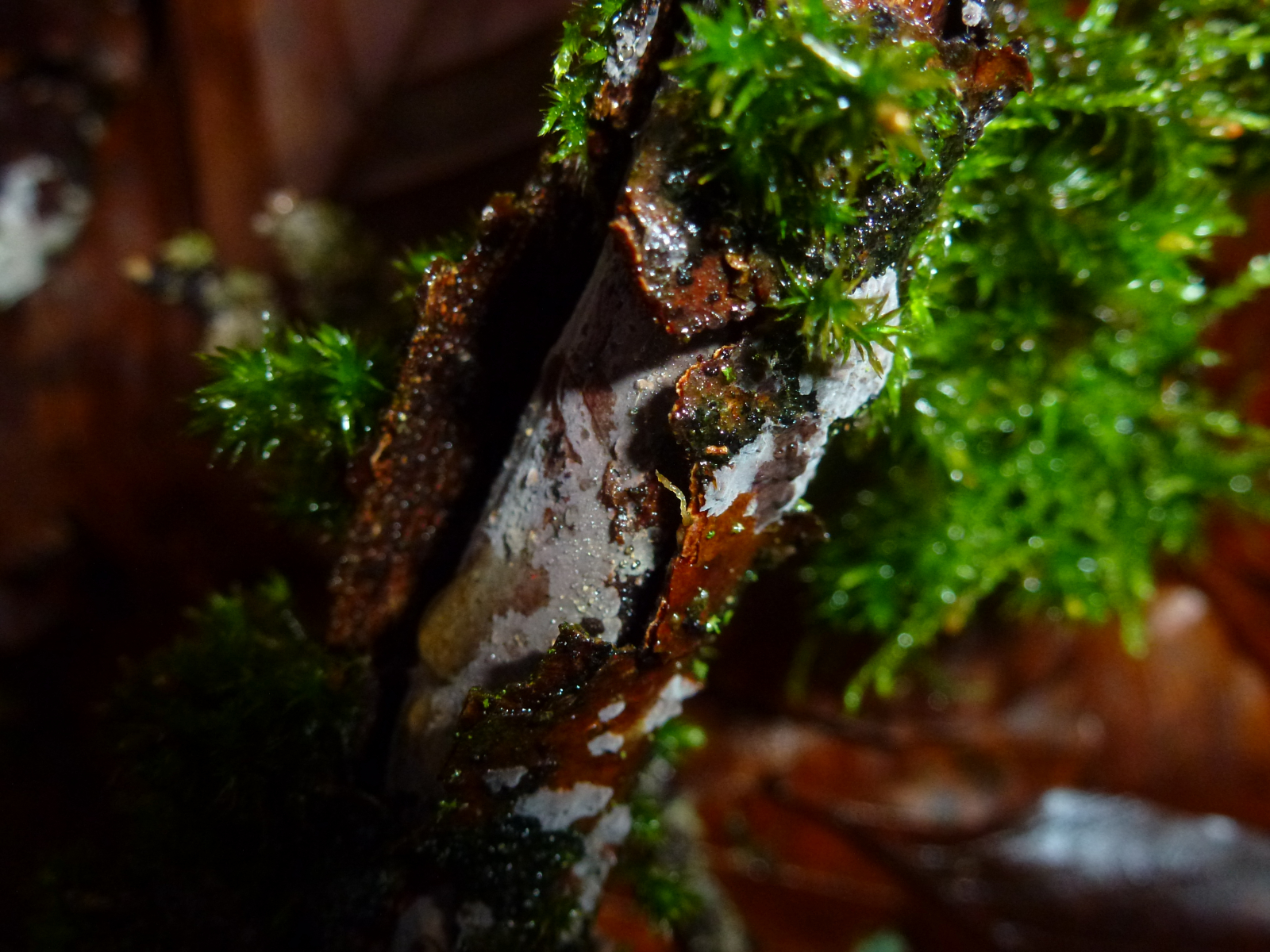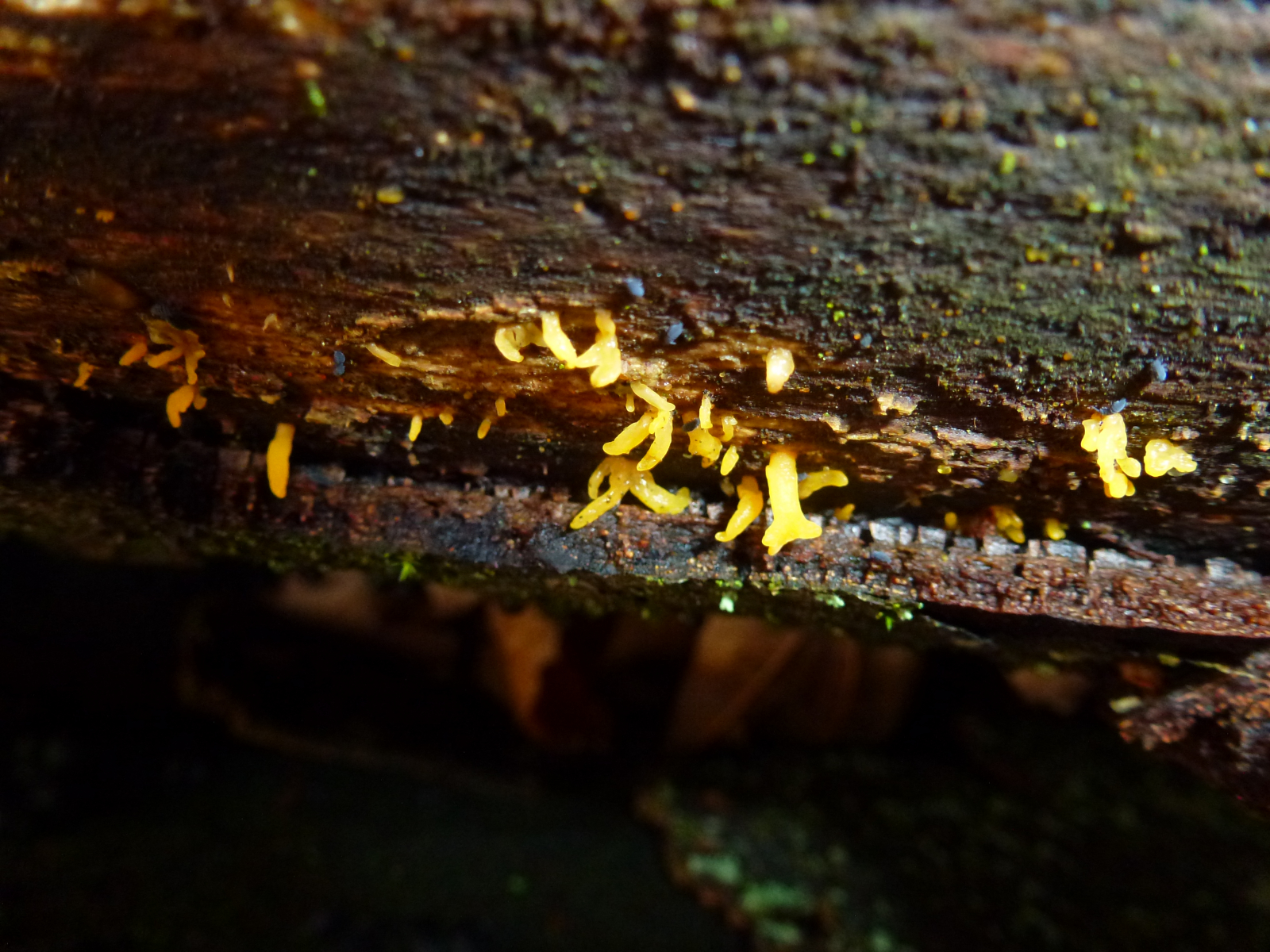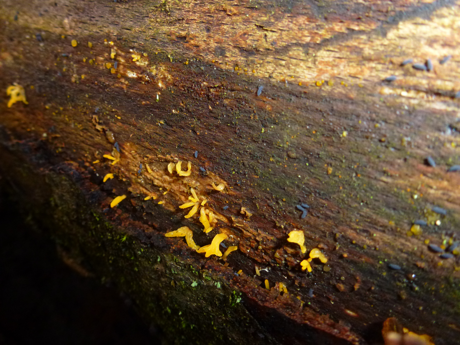 An einem am Boden liegenden Laubbaum (vielleicht Buche) waren diese Pilze wie eine sehr dünne Matte entlang des Stammes. Die einzelnen Kugeln waren sehr klein, vielleicht 1 bis 2 mm. Auch erschienen sie mir nicht so klar einzeln stehend und abgegrenzt, aber hier kann ich mich aufgrund der Winzigkeit natürlich täuschen. Auf dem zweiten Foto sieht man auch "Kugeln" in normaler Größe und wie ich sie sehr häufig sehe.