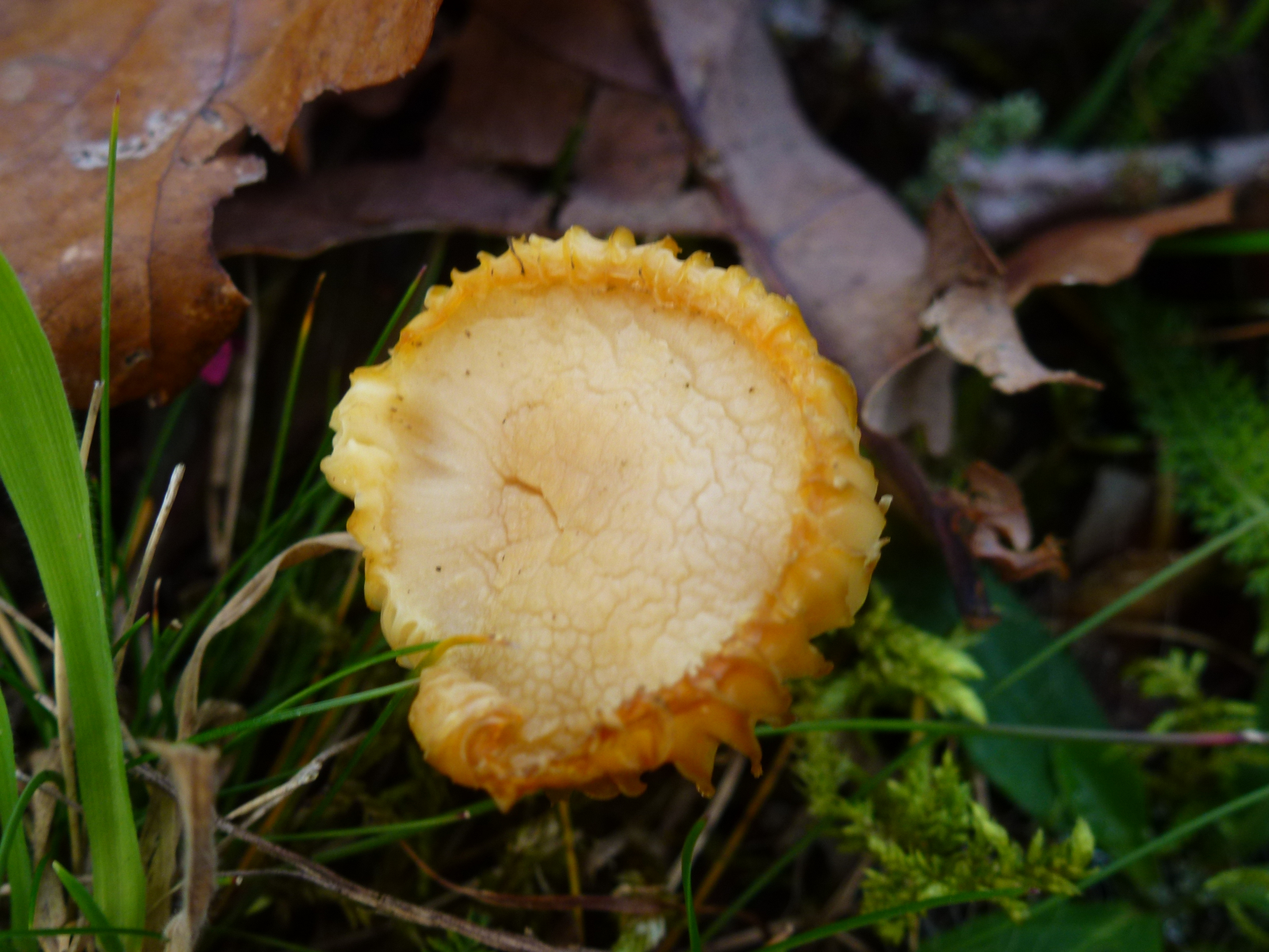Ich wollte einen mir unbekannten und vermutlich nicht unbedingt genießbaren Pilz nicht zu meinen gesammelten wunderbaren Pfifferlingen und Trompetenpfifferlingen dazu geben und ein gesondertes Behältnis hatte ich nicht dabei.