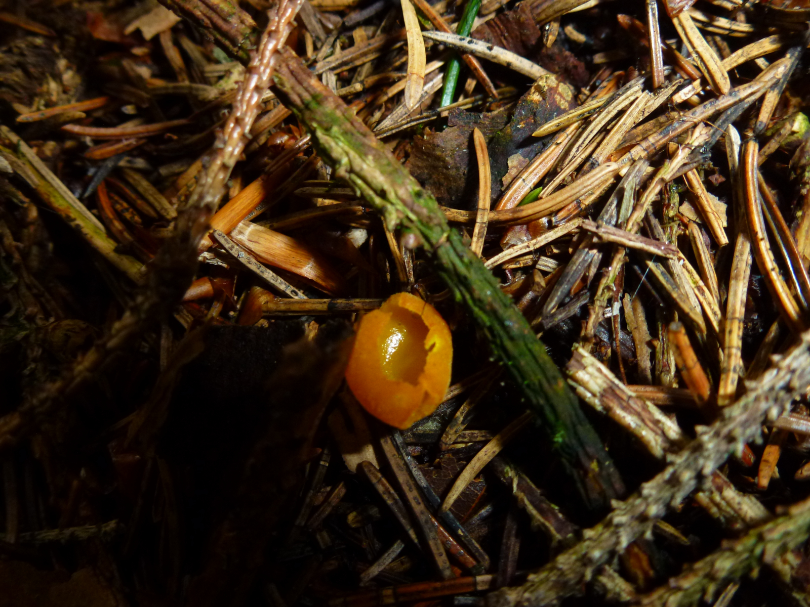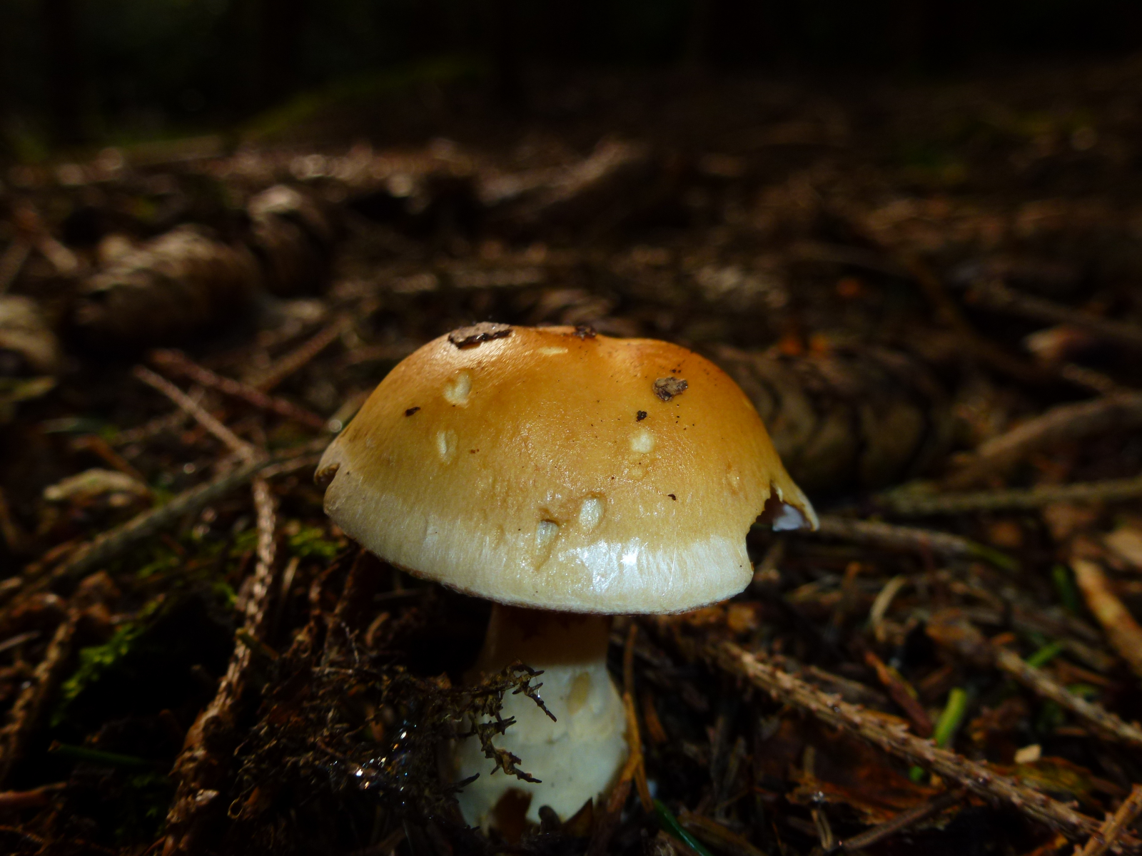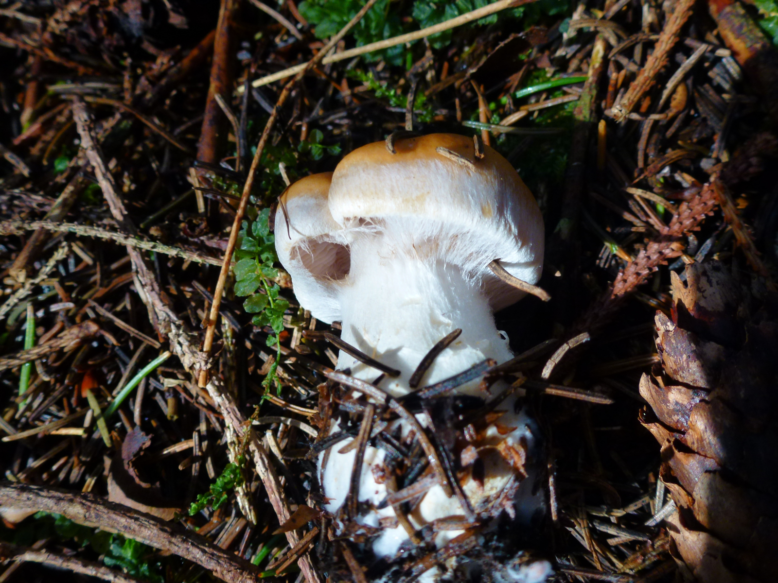 Pilz 2 (auch dieser Pilz riecht leicht - irgendwie chemisch? Das rot-orange am Stiel fand ich auffällig)