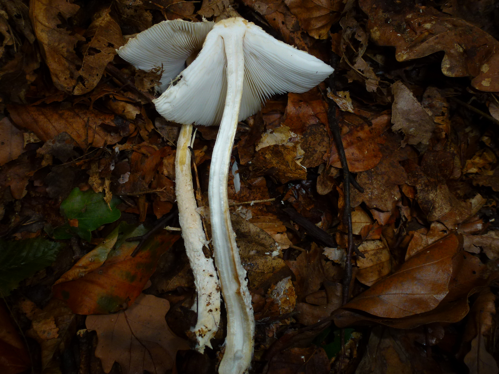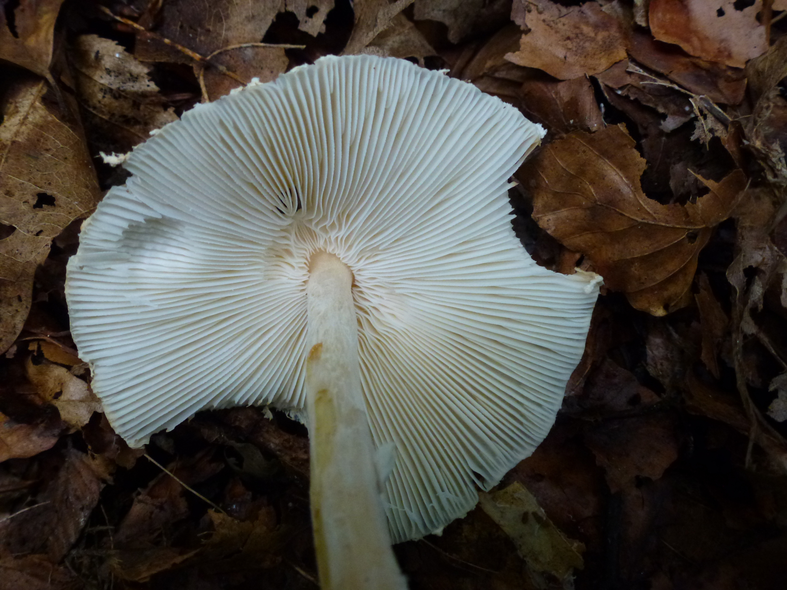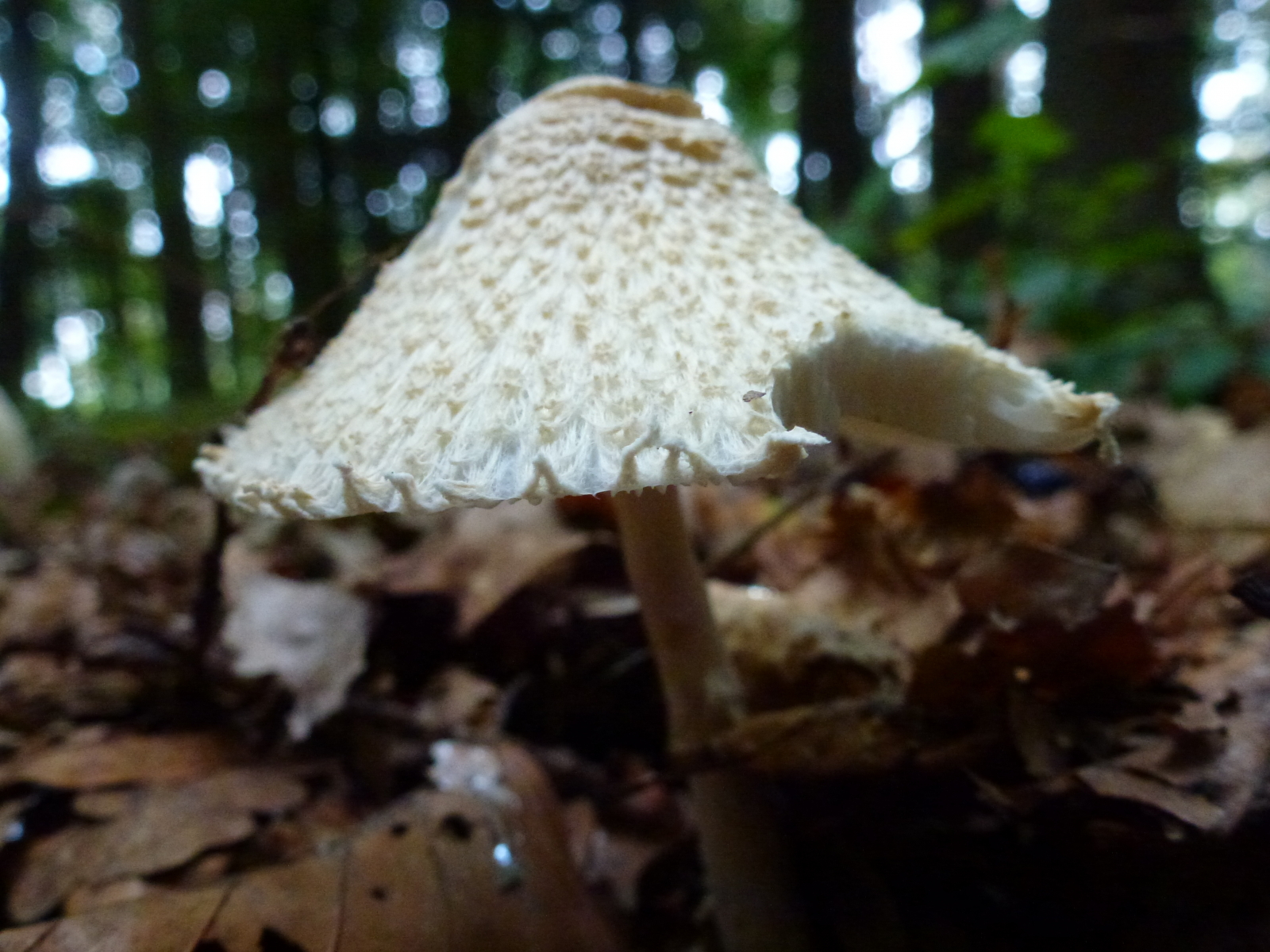 Zwar versuche ich in letzter Zeit erst einmal die Gattung der Pilze zu bestimmen und dann eben innerhalb einer Gattung weiterzukommen, bei diesem Pilz dachte ich allerdings, dass es ja wohl nicht allzu viele weißliche Pilze mit einer derartigen Beflockung geben kann und suchte schlicht nach Fotos bei 123. Von den dort angegebenen Möglichkeiten ausgehend ergoogelte ich dann halt überprüfend die verschiedenen Möglichkeiten im Netz.