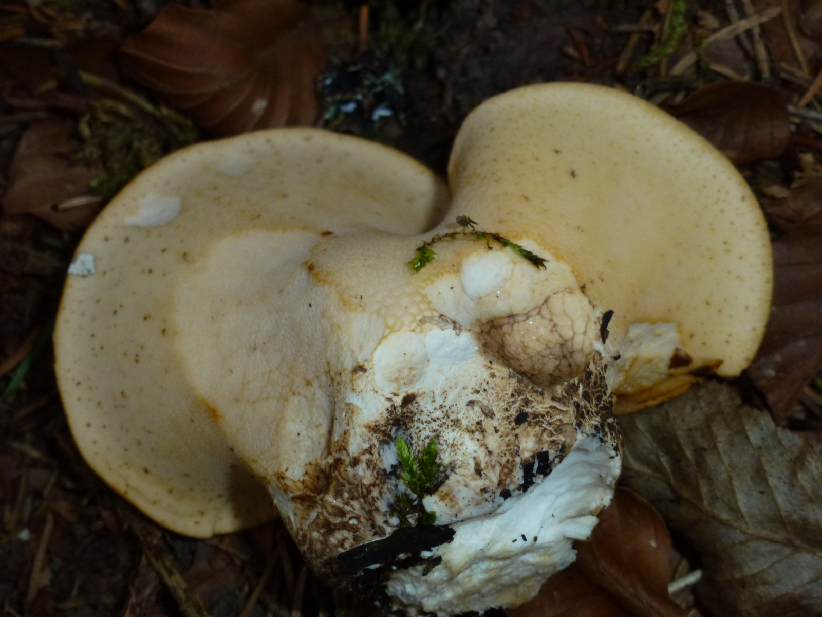 der Pilz kam unter dem Eichenast hervor - es kann gut sein, dass darunter ein Ast einer Buche war. Nachgesehen und damit den Pilz evtl. beschädigt habe ich nicht (es war der einzige Pilz weit und breit und diesen einen wollte ich einfach stehen lassen).