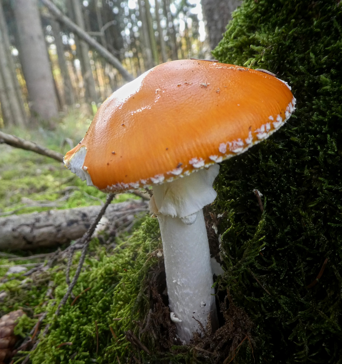 diesen Pilz fand ich heute im Altmühltal in einem Mischwald mit Rotbuchen, Eichen, Fichten, Kiefern und noch weiteren Bäumen. Der Pilz stand auf einer Mini-Lichtung und alle Bäume standen mehr oder weniger gleich weit entfernt. Ist dies vielleicht der Orangerote Ritterling?