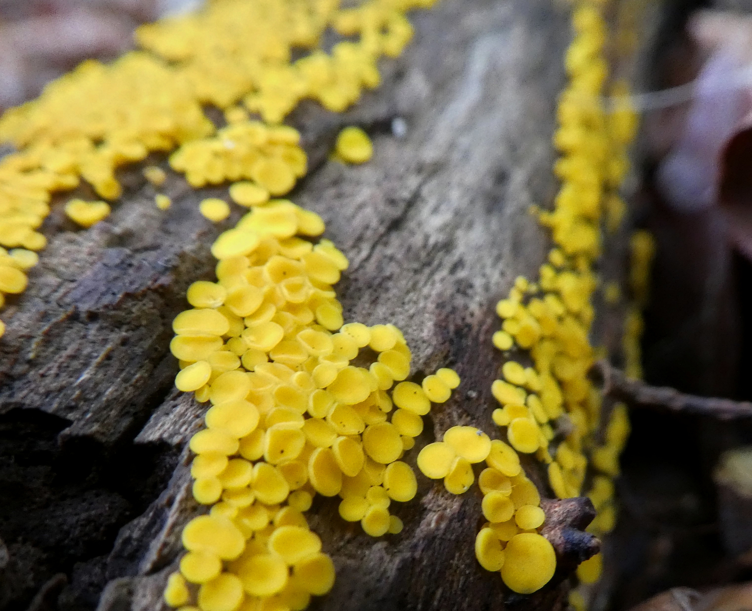 Vielleicht das Zitronengelbe Reisigbecherchen (Bisporella citrina)