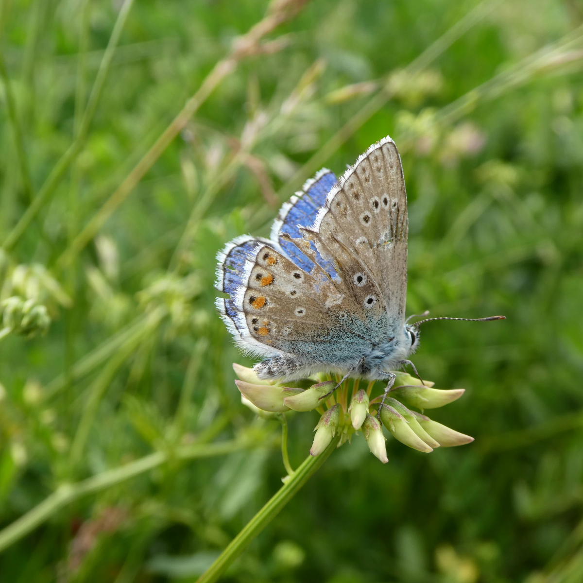 Ein bereits etwas abgeflogener Bläuling, ich denke der Himmelblaue Bläuling (Lysandra bellargus)
