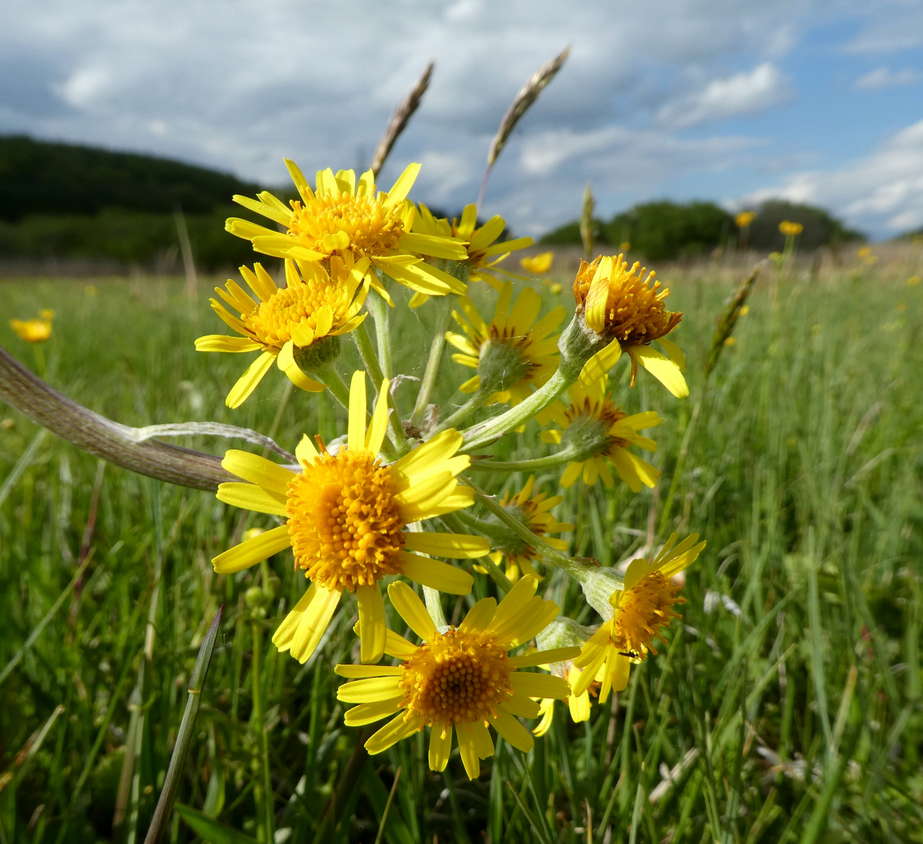 die eine verblühte Pflanze ist das Spatelblättrige Greiskraut (Tephroseris helenitis). Und blühend sieht die Pflanze so aus: