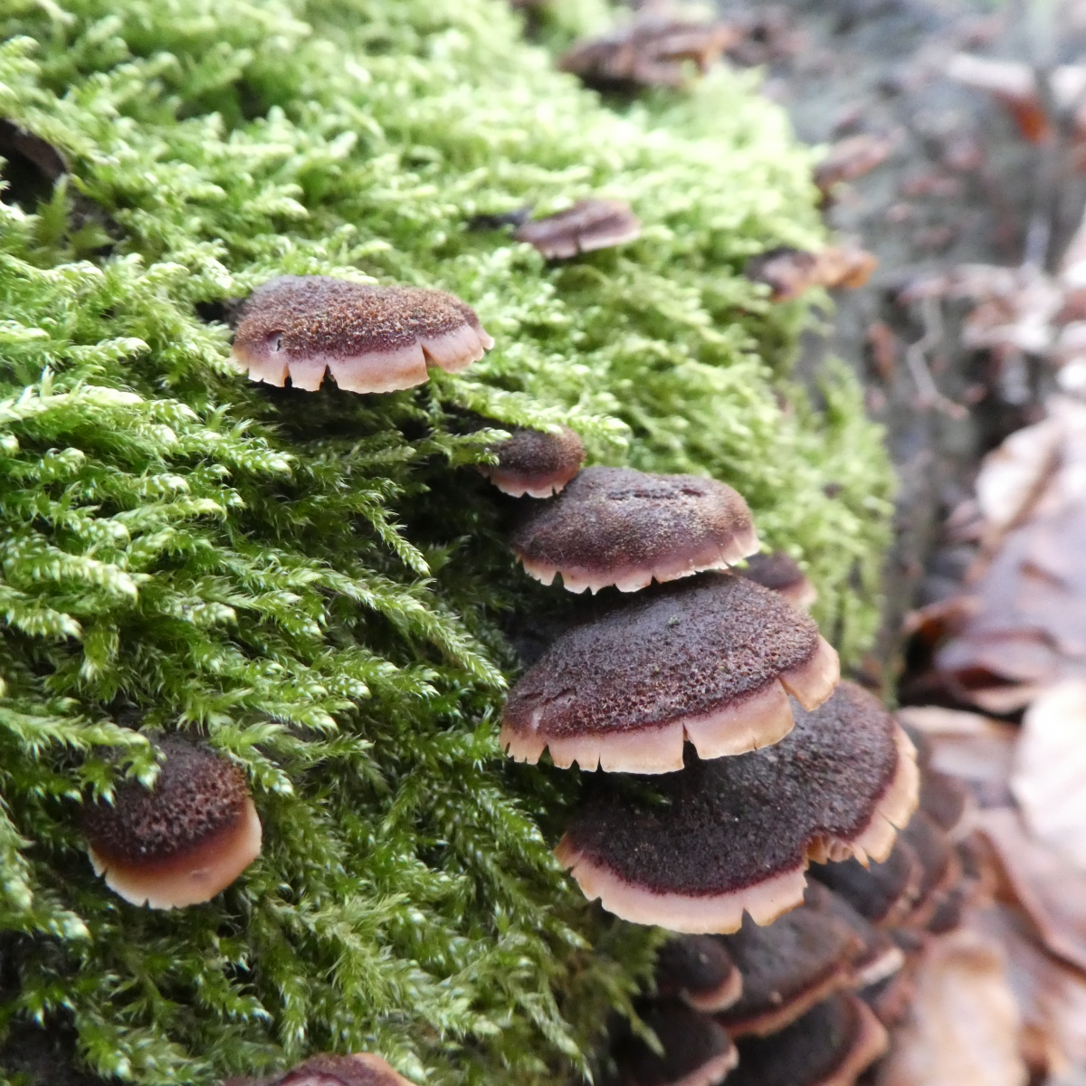Sie wuchsen zahlreich an einem am Boden liegenden Rotbuchenstamm und waren aus meiner Erinnerung heraus vielleicht 5 cm im Durchmesser.