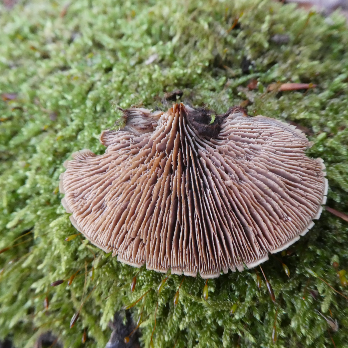Nachdem ich ziemliche Schwierigkeiten hatte diese Pilze zu fotografieren und keines der Fotos wirklich scharf geworden ist, stelle ich einfach ein paar Fotos ein. Auf jedem Foto ist irgendwie immer ein anderes Detail leicht schärfer zu erkennen. (Zumal ich nicht weiß, was für die Bestimmung, sofern makroskopisch überhaupt möglich, evtl. erforderlich ist.)