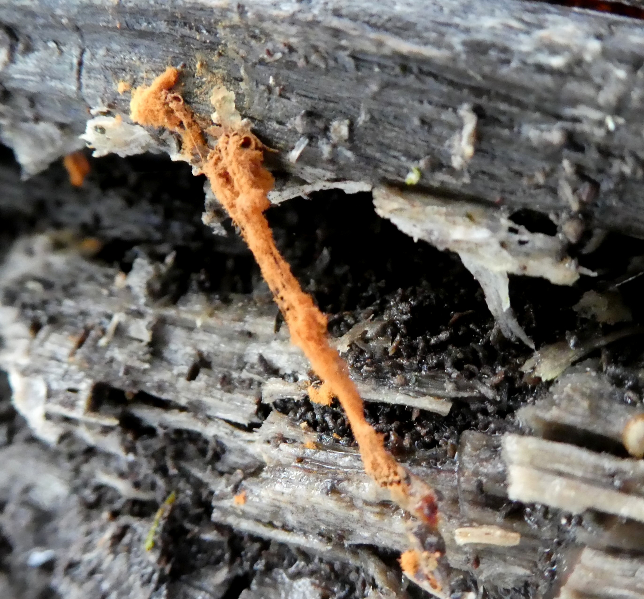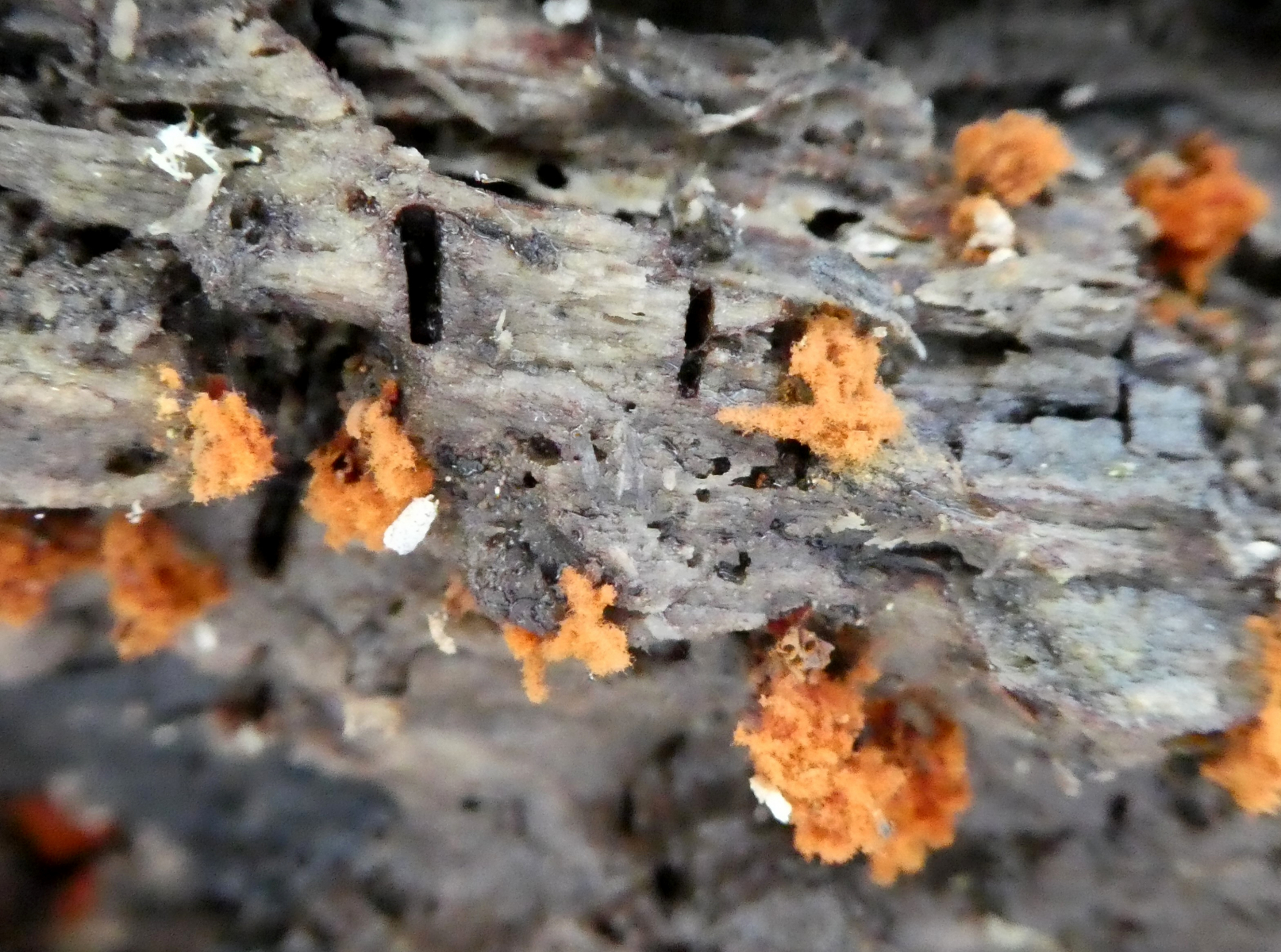Überhaupt fesselten mich immer wieder die verschiedenen Schleimpilze, so wie der Geweihförmiger Schleimpilz (Ceratiomyxa fruticulosa) - nö, wahrscheinlich Ceratiomyxa fruticulosa var. porioides (Weißes Netztpolster).