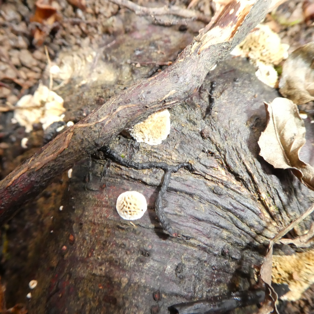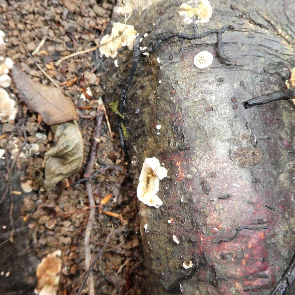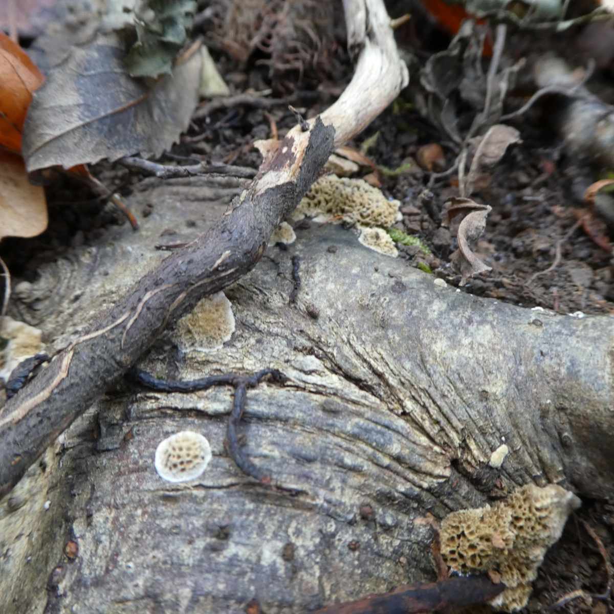 Alle Erdsterne wuchsen und wachsen zusammen, also der G. fimbriatum, der G. pectinatum und der G. quadrifidum, zum Teil direkt nebeneinander und durcheinander. Es ist dort reiner Fichtenwald und sehr kalkhaltiger aber nicht sandiger Boden sondern mit einer dünnen Humusschicht. Der Pilz auf Foto 2 hat zwei Wochen Dauerfrost hinter sich und ich dachte ehrlich gesagt, dass das Aussehen daher kommt.