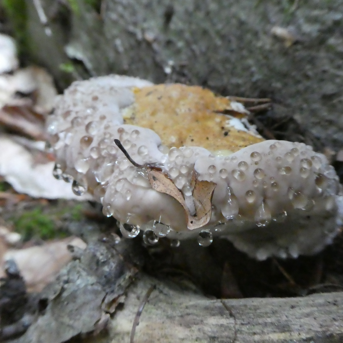 So hoch liegt der Fundort gar nicht, ungefähr 430 Meter, und eigentlich gibt es dort überwiegend Laubbäume. Ich habe keine Ahnung von den Hallimaschen und über den Zwiebelfüßigen findet man jetzt nicht viel Information im Netz, in meinem schlauen Buch steht der erst einmal gar nicht drin. Mir ist nur der verdickte Stiel aufgefallen und nachdem man im Netz auch viele Fotos mit den Schuppen bis zum Rand finden kann, dachte ich halt, dass es dieser sein könnte.