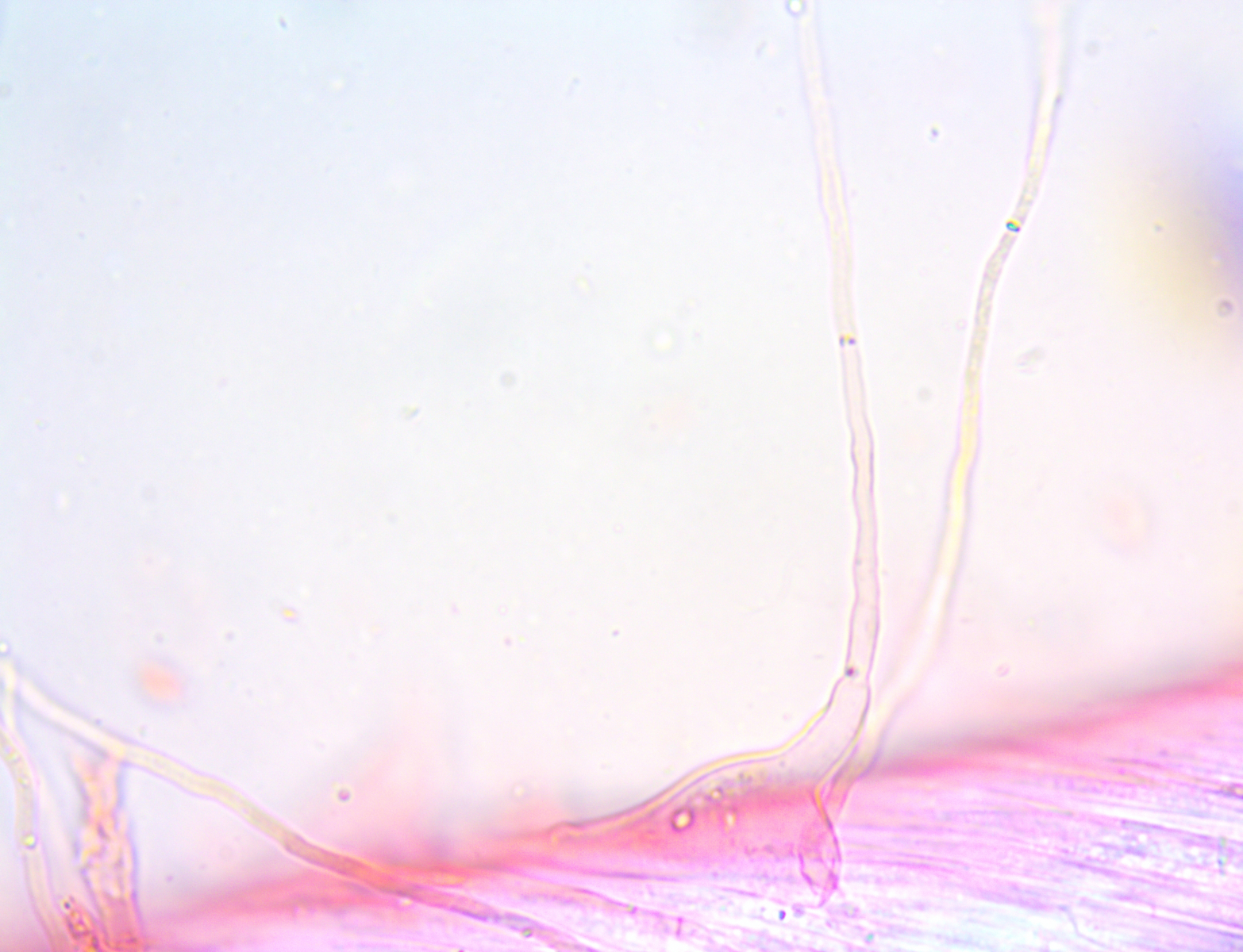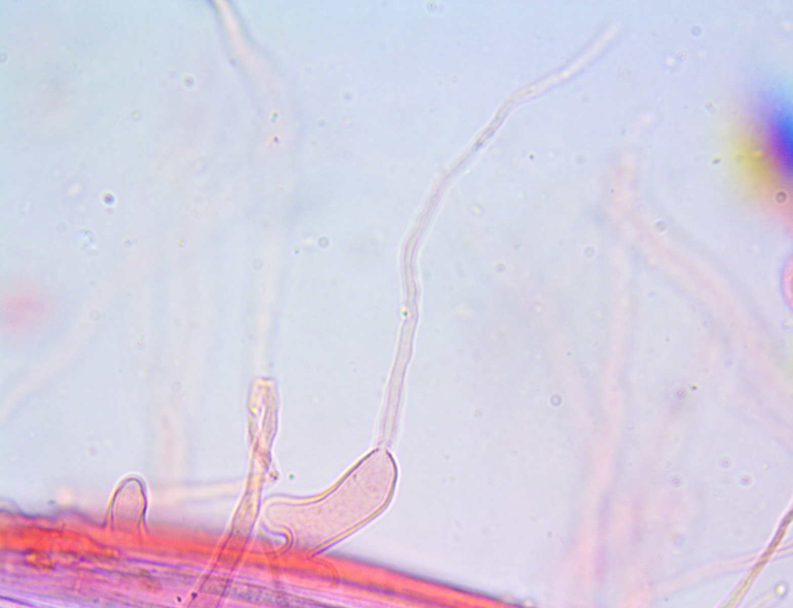 Wenn ich 1' > 3' > 5' > 7' > 9' > 10 gehen würde, würde L. cerealis kommen, der aber überhaupt nicht nach den Beschreibungen in FN2 passt (Bei Nadelbäumen, keine Cheilozystiden), die Art soll allerdings synonym mit Ludwig 42.2 L. albissimus sein, dort würde mein Fund ganz gut zur Kollektion B-C passen