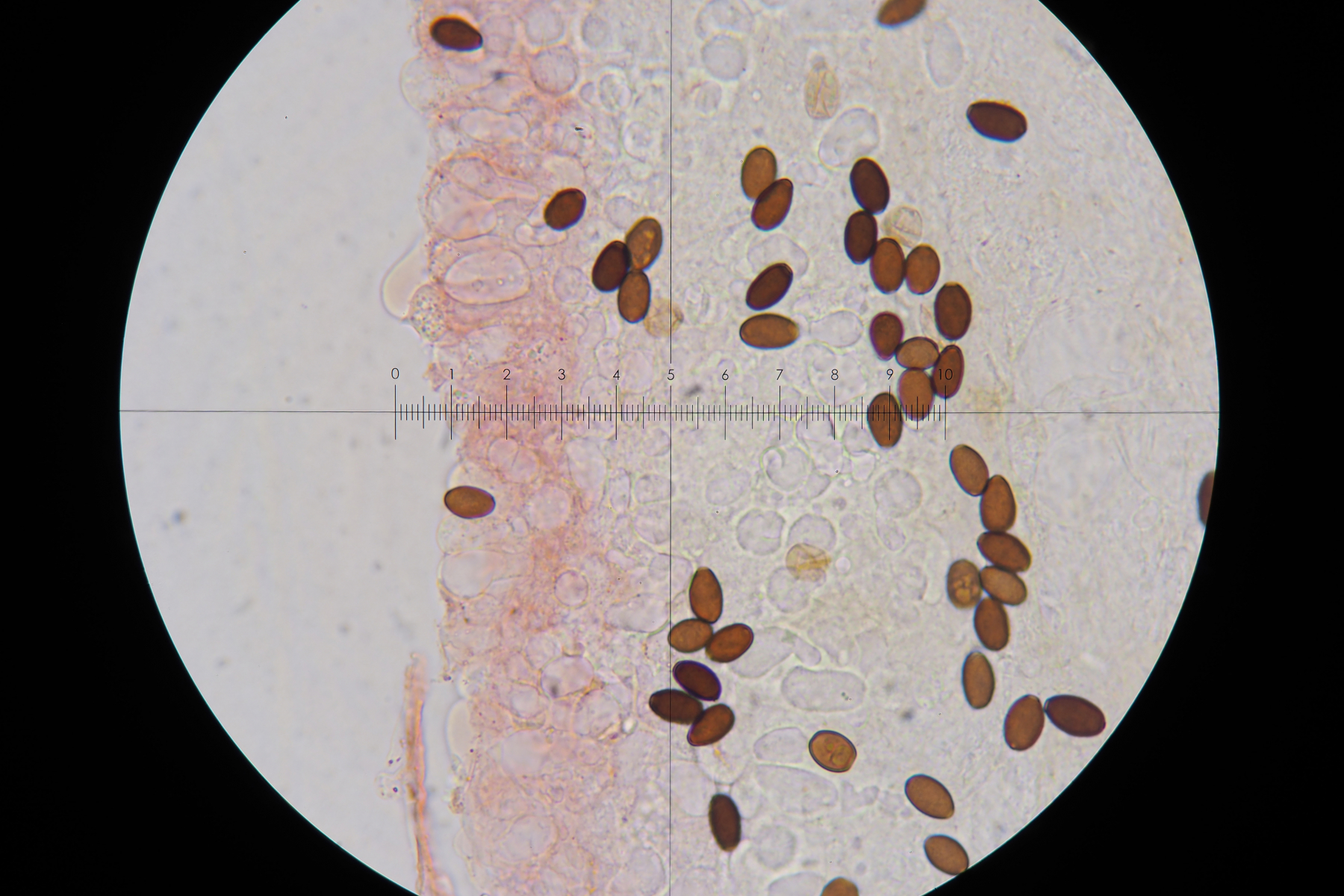 Den gabs gleich am Parkplatz, vmtl. Peziza varia, mikroskopiert habe ich, der mehrschichtige Fruchtfleisch Aufbau, sowie die perlkettenförmigen Paraphysen wie in PdS abgebildet konnte ich sehen. PdS war allerdings mein einziger vergleich.