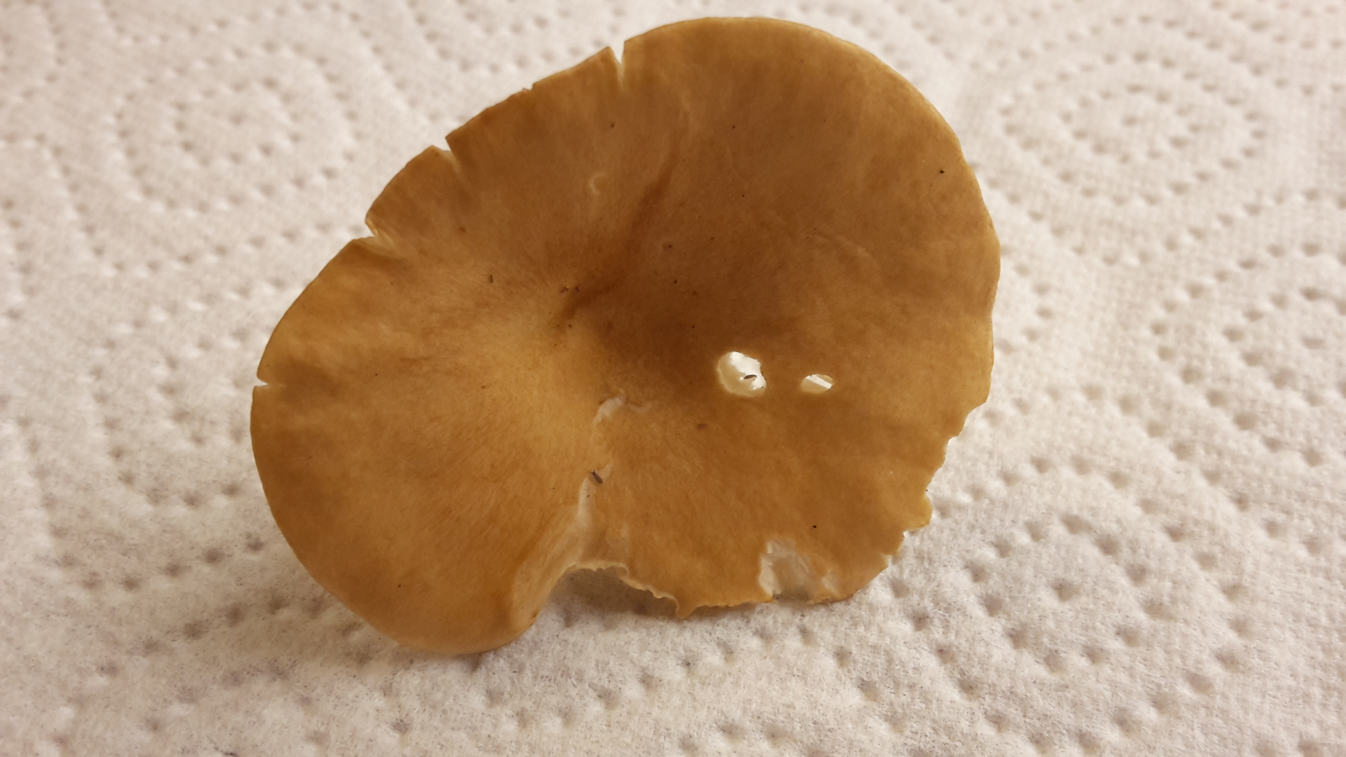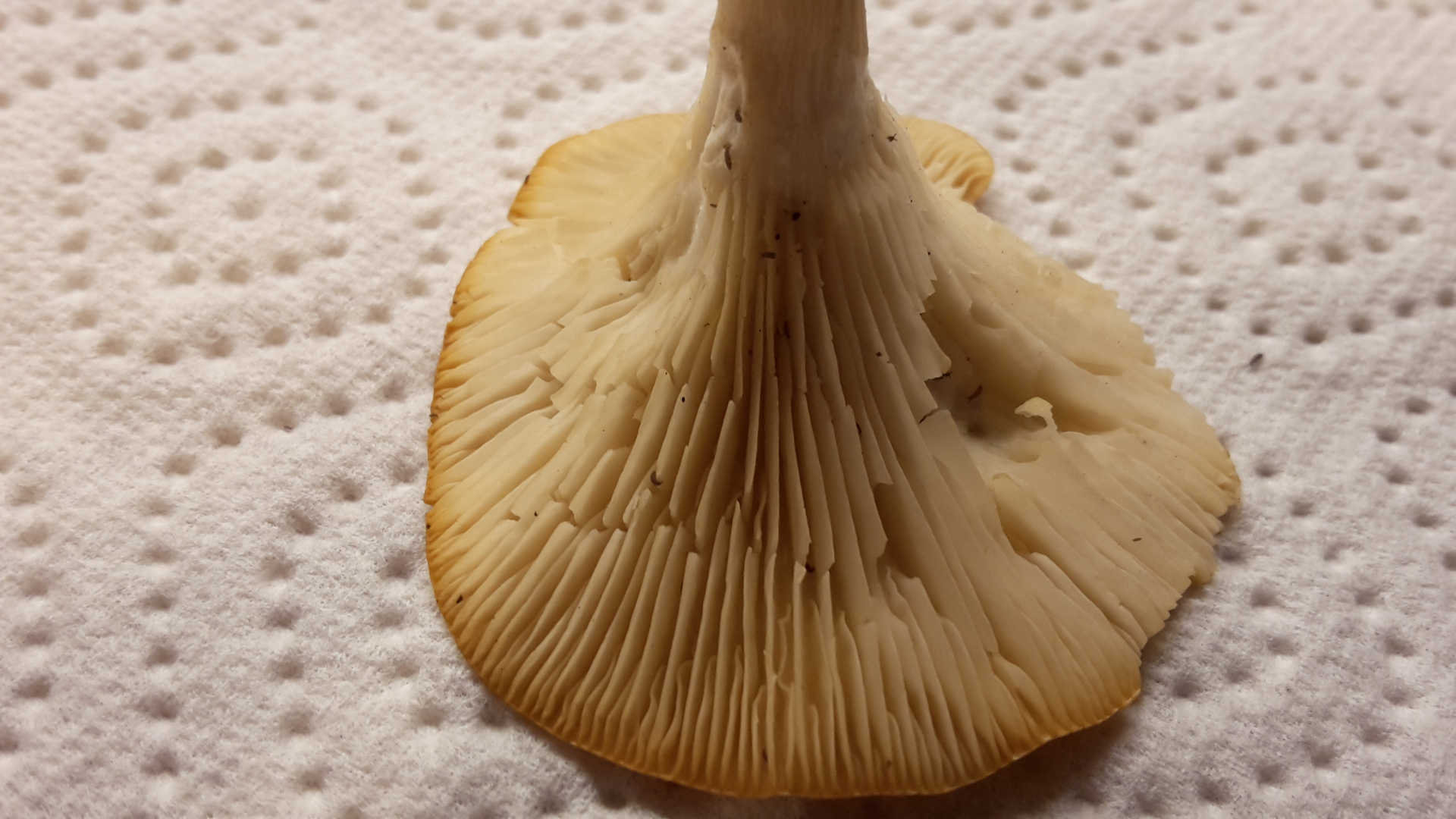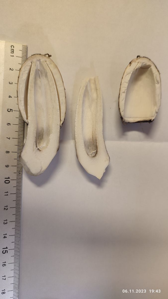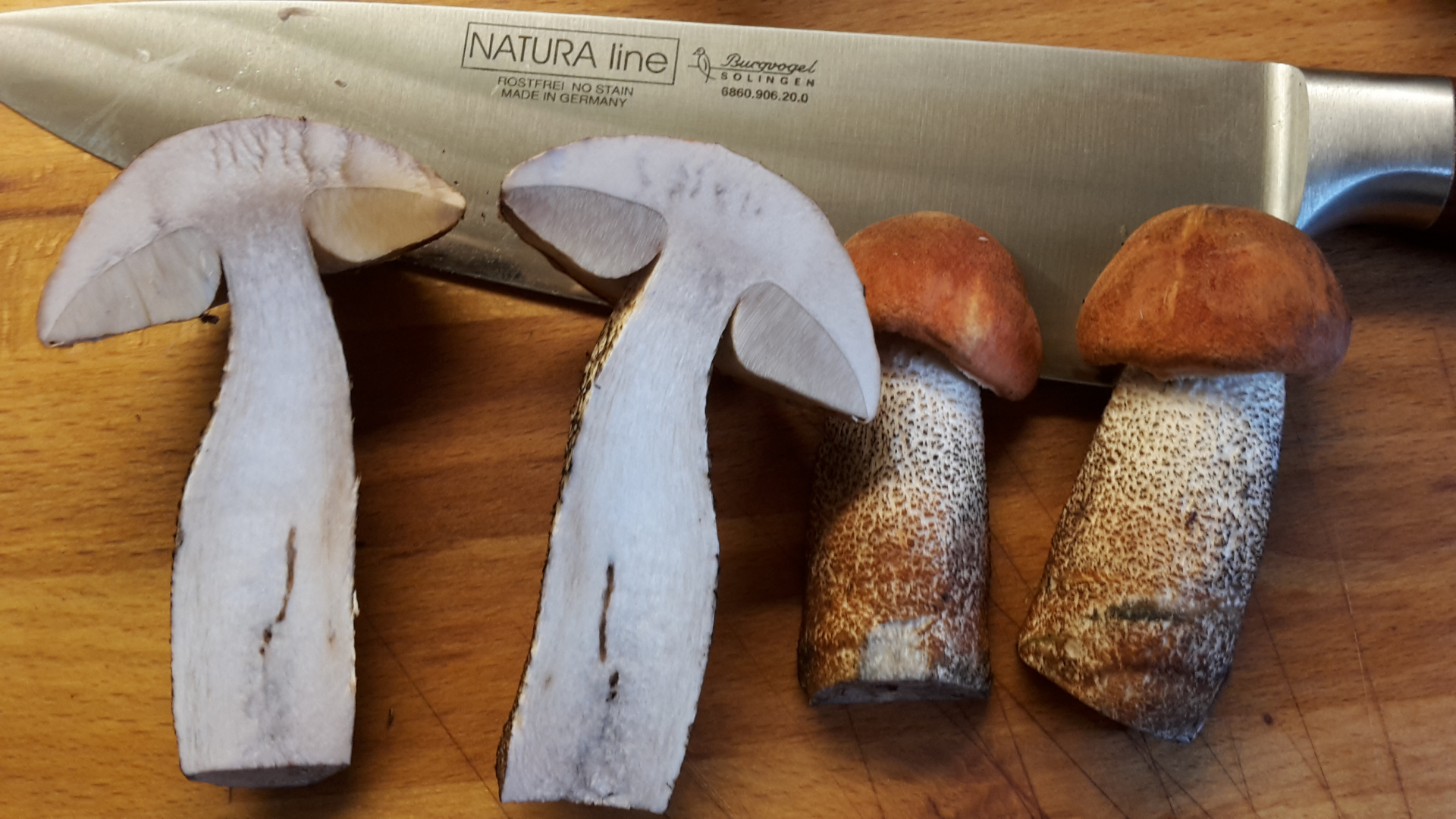 Fleisch: Nach Schnitt reinweiß, langsam färbend dunkelbraun...schwarz, am "Stiel" tritt ein Saft wie Wasser (also keine Milch) aus.