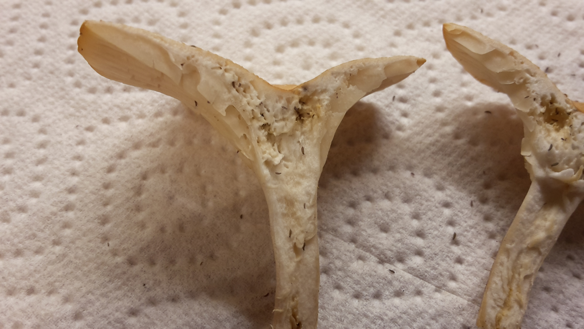 Das ist es, was mich nun verwirrt, der Fruchtkörper zeigt mir keinerlei Sporen bzw. "Sporenorgane."