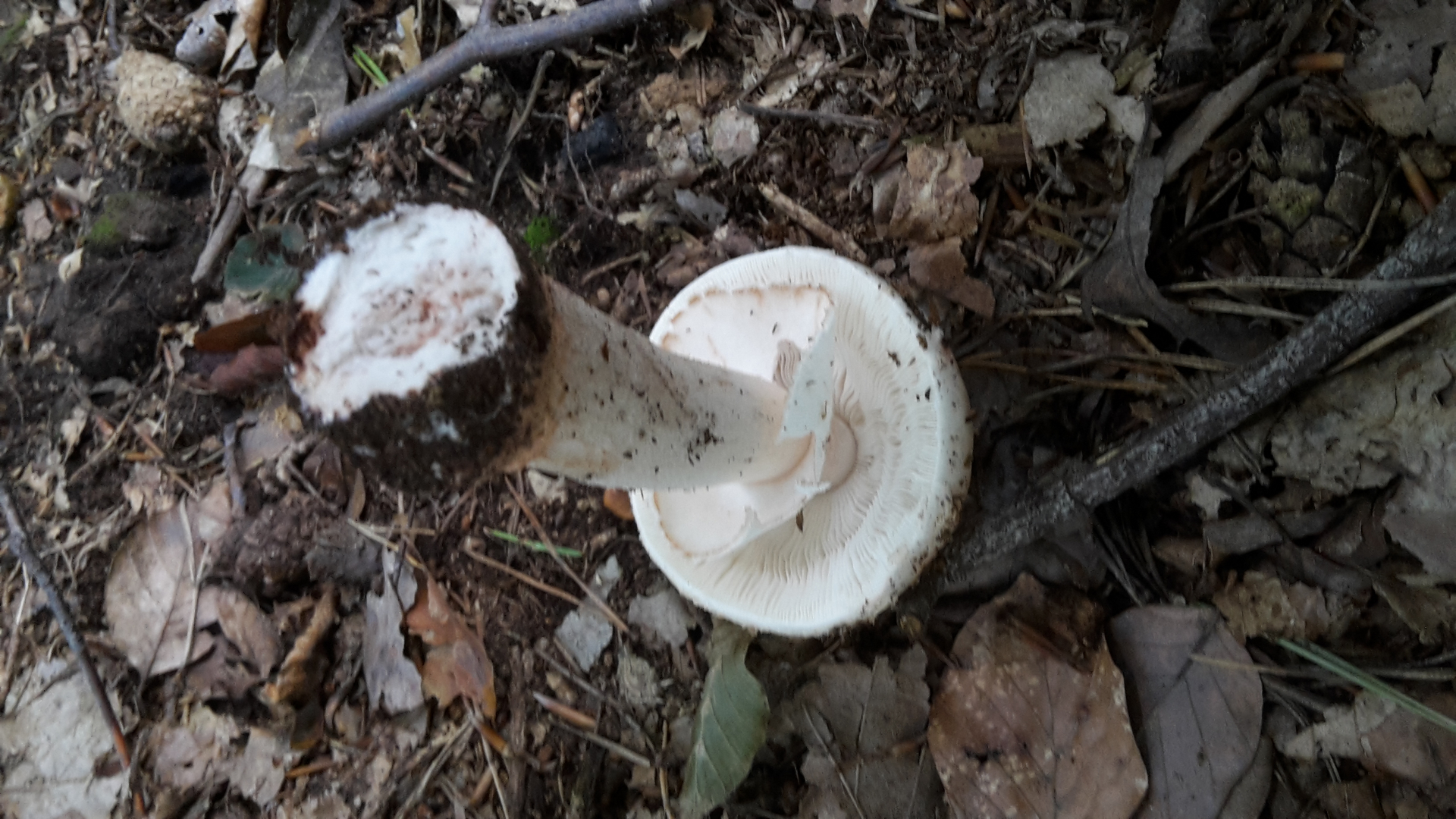 Fleisch: Nach Schnitt reinweiß, langsam färbend dunkelbraun...schwarz, am "Stiel" tritt ein Saft wie Wasser (also keine Milch) aus.