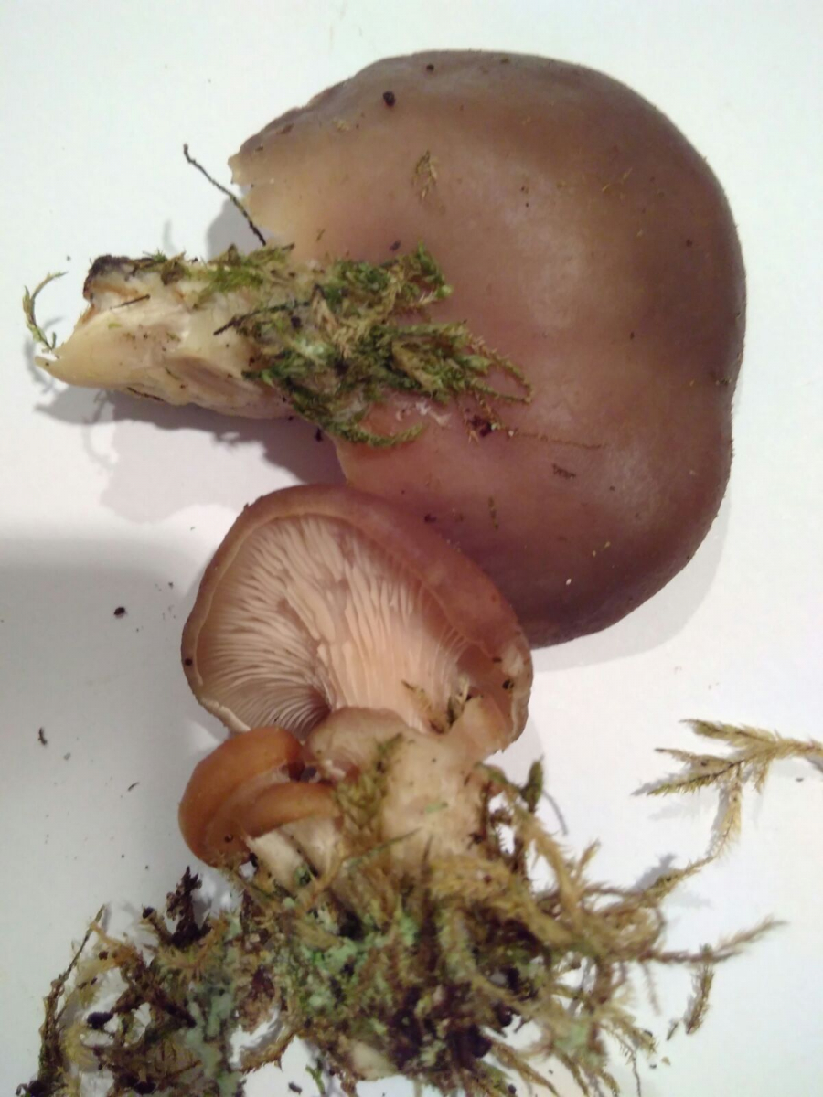 Gestern habe ich an einem alten moosigen Buchenstumpf folgende Pilze gefunden: