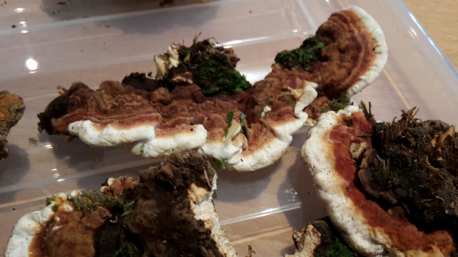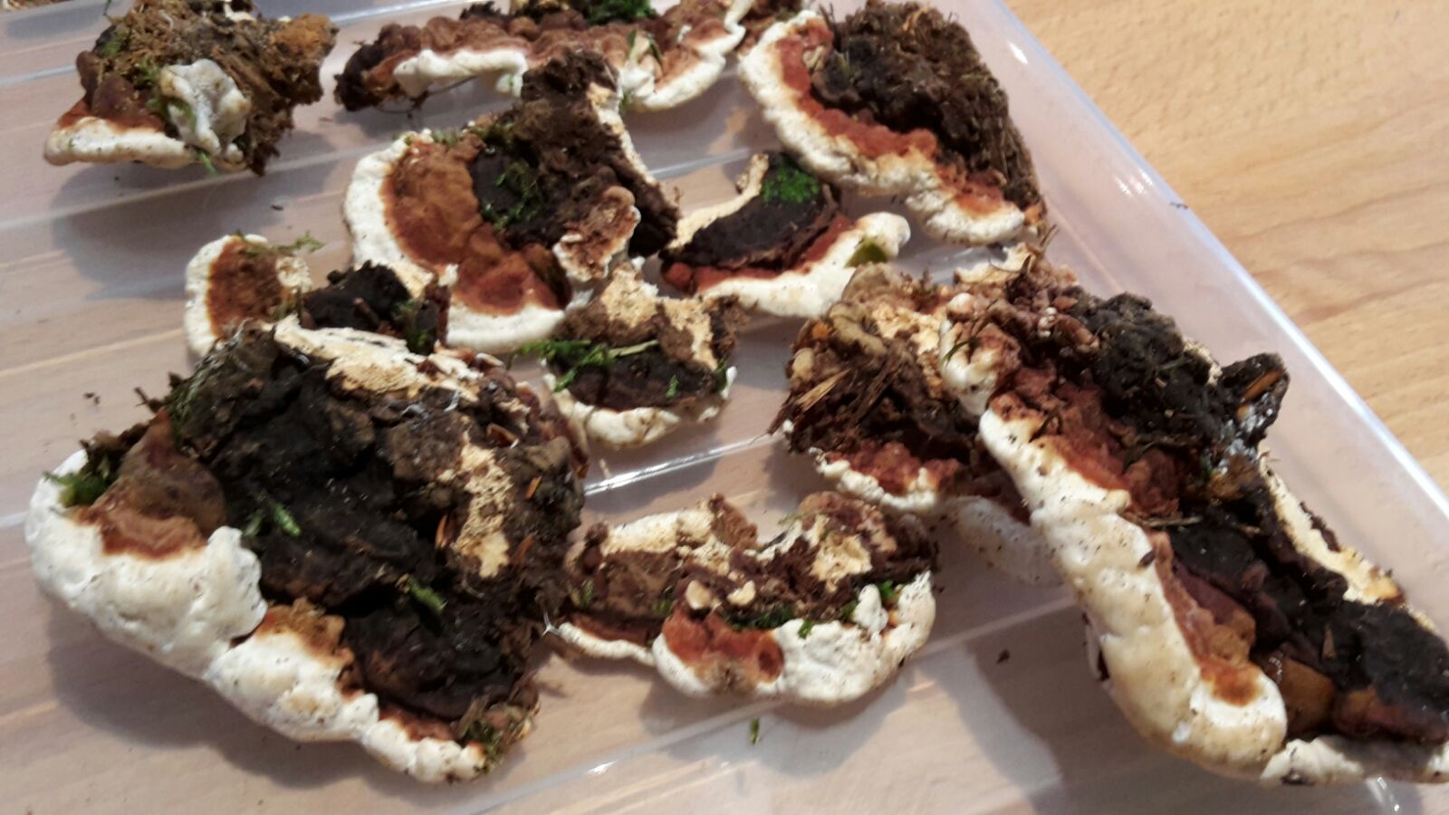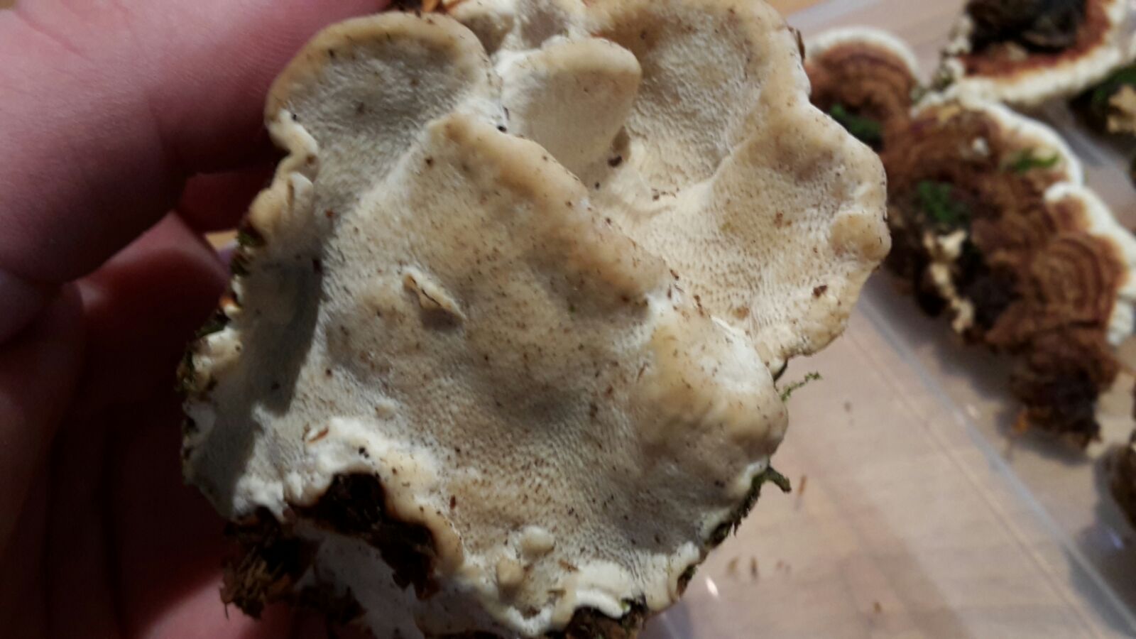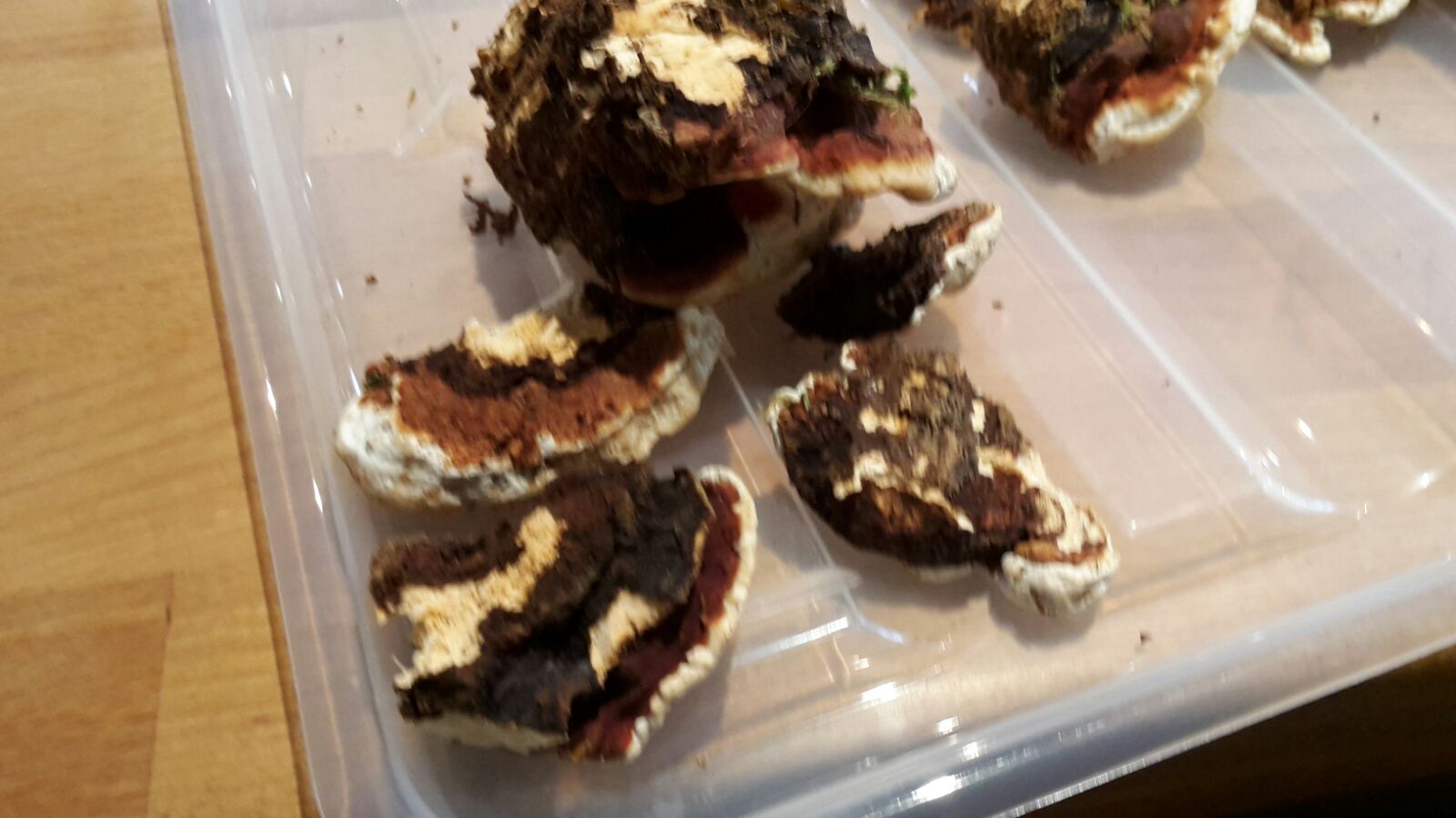 Die wuchsen auf den Stümpfen zweier gefällter Bäume die komplett mit Moos bewachsen waren. Sofort mitnehmen - tja wäre ich Pilzexperte hätte ich das wohl nicht getan, mein Bekannter der meine Pilze immer wieder anschaut meinte dass der Pilz als Heilpilz eben begehrt ist. Dementsprechend dachte ich "besser mal von zwei Stümpfen mitnehmen" da im Umkreis jeder andere Baumstumpf den selben Pilzbewuchs aufwies und ich mir dachte dass die Menge hier nicht verkehrt ist.