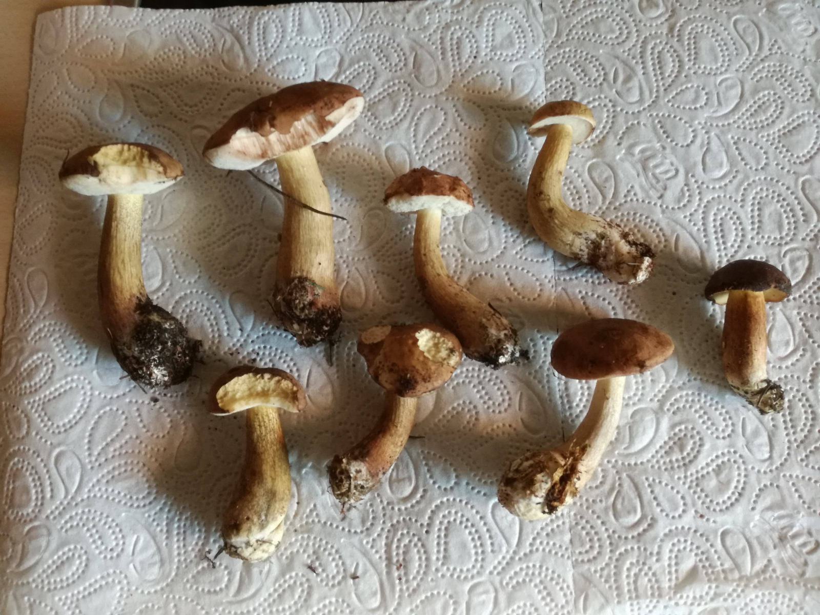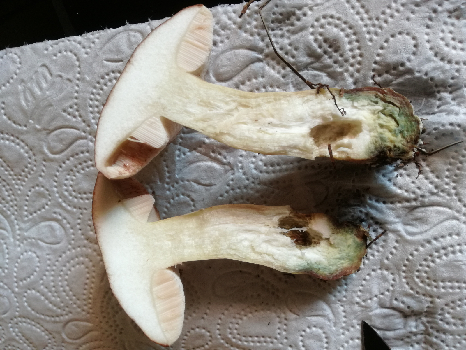 1. Komischerweise habe ich hier im Schwarzwald noch nie einen Steinpilz entdeckt und heute dachte ich, es wäre so weit. Die ersten drei Bilder zeigen meinen Fund, von dem ich zunächst überzeugt war, dass es Steinpilze seien (und eindeutig ein Maronenröhrling rechts auf dem Sammelbild). Nach Recherchen bin ich mir aber nicht mehr so sicher: optisch doch sehr nahe am Gallenröhrling, was den Stiel und das Netz betrifft. Auch meine ich eine sehr leichte Rosafärbung der Röhren zu erkennen (im Schnittbild ein bisschen ersichtlich). Ich habe bereits einen kurze Geschmacksprobe genommen, sie schmecken nicht wirklich bitter... Was meint ihr dazu?
