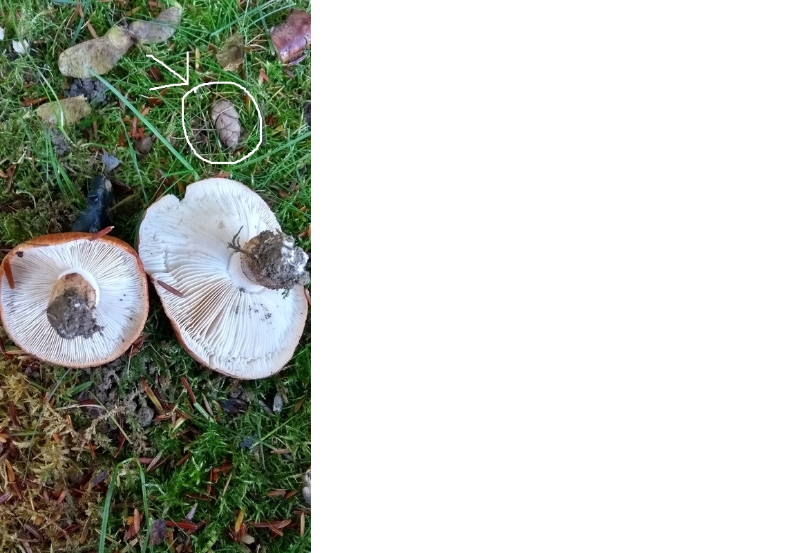Ihm fiel sofort der kleine, unscheinbare Zapfen auf, der auf Bild 2 direkt neben den dargestellten Pilzen liegt.