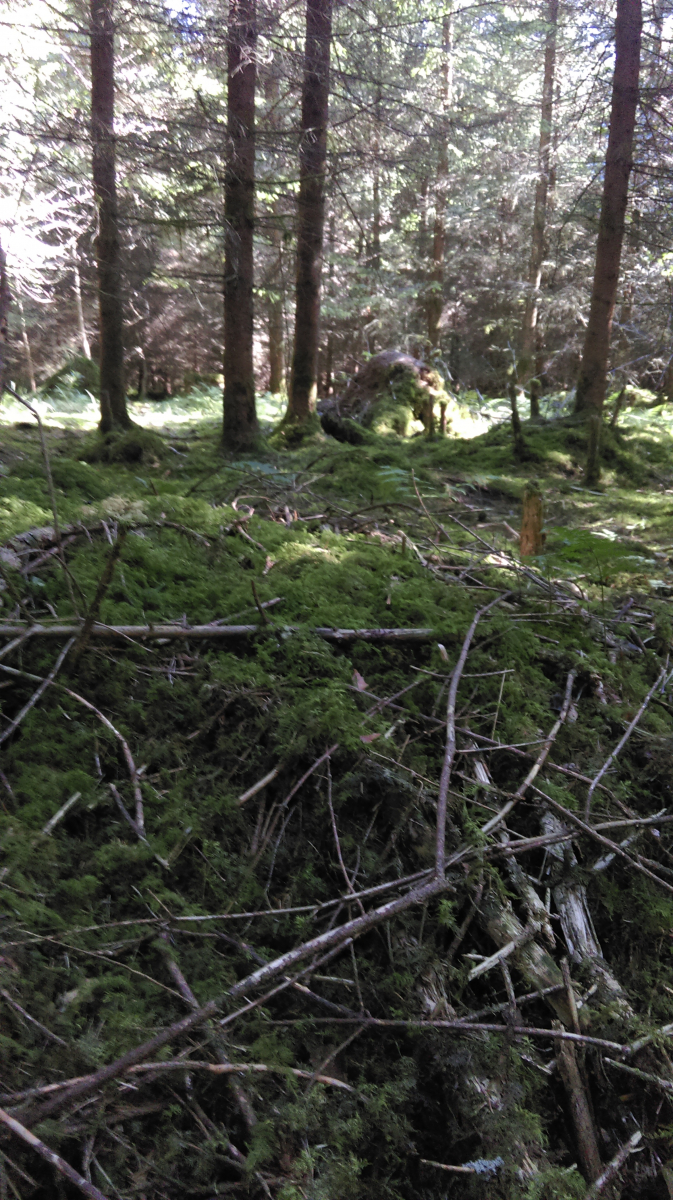 So sah die Umgebung aus: in unmittelbarer Nähe nur Eichen und Fichten