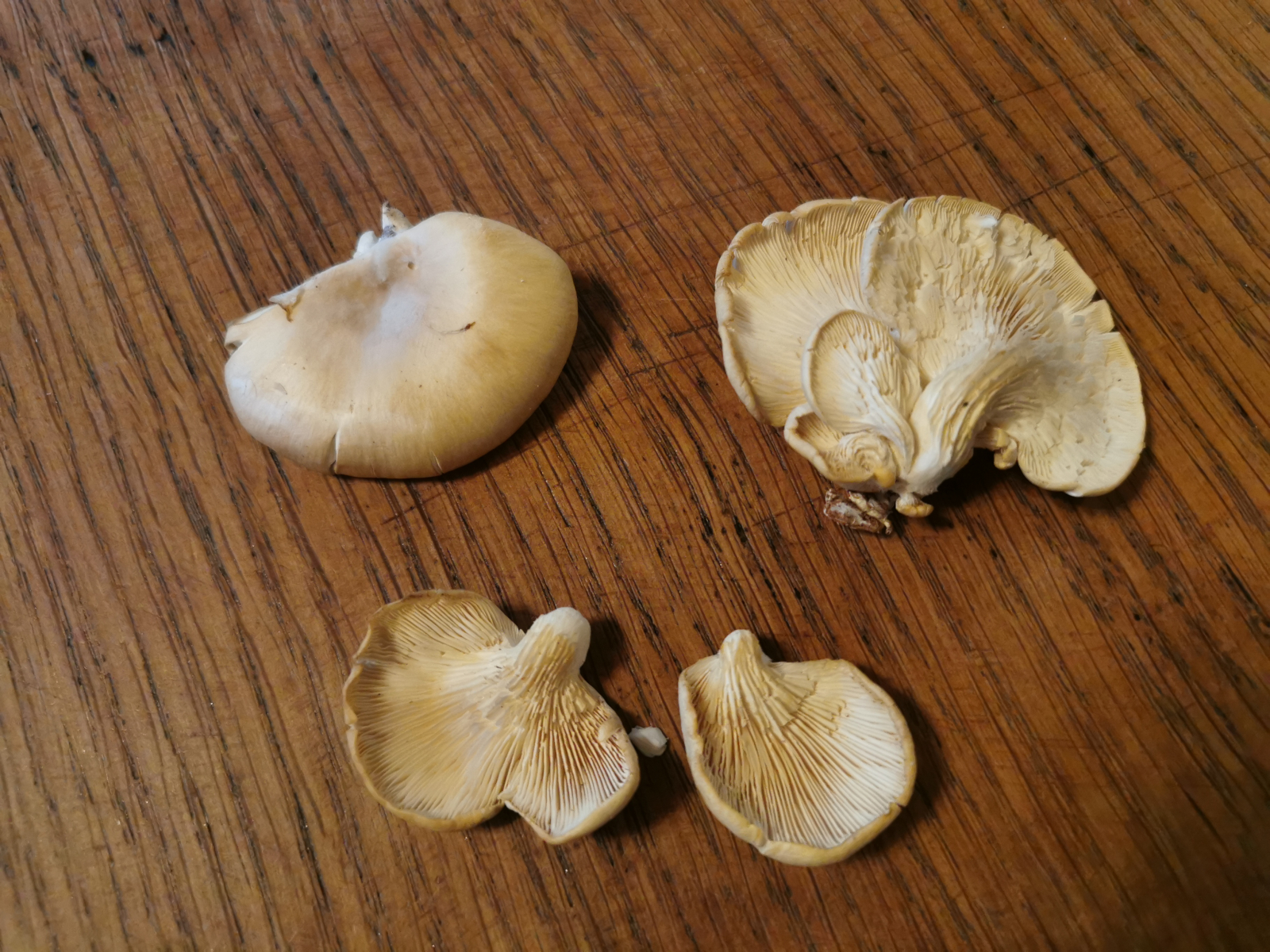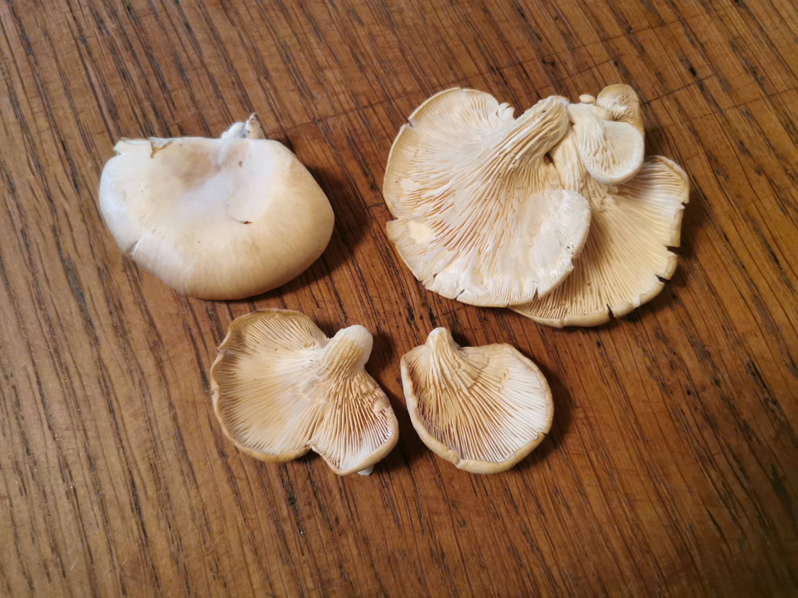 Gestern habe ich diese Seitlinge gefunden, bei denen alle Merkmale außer dem Substrat auf den Lungenseitling, wie ich ihn kenne und schon oft gefunden habe, passen. Evtl. Kommt ja noch der rillstielige Seitling in Frage?
