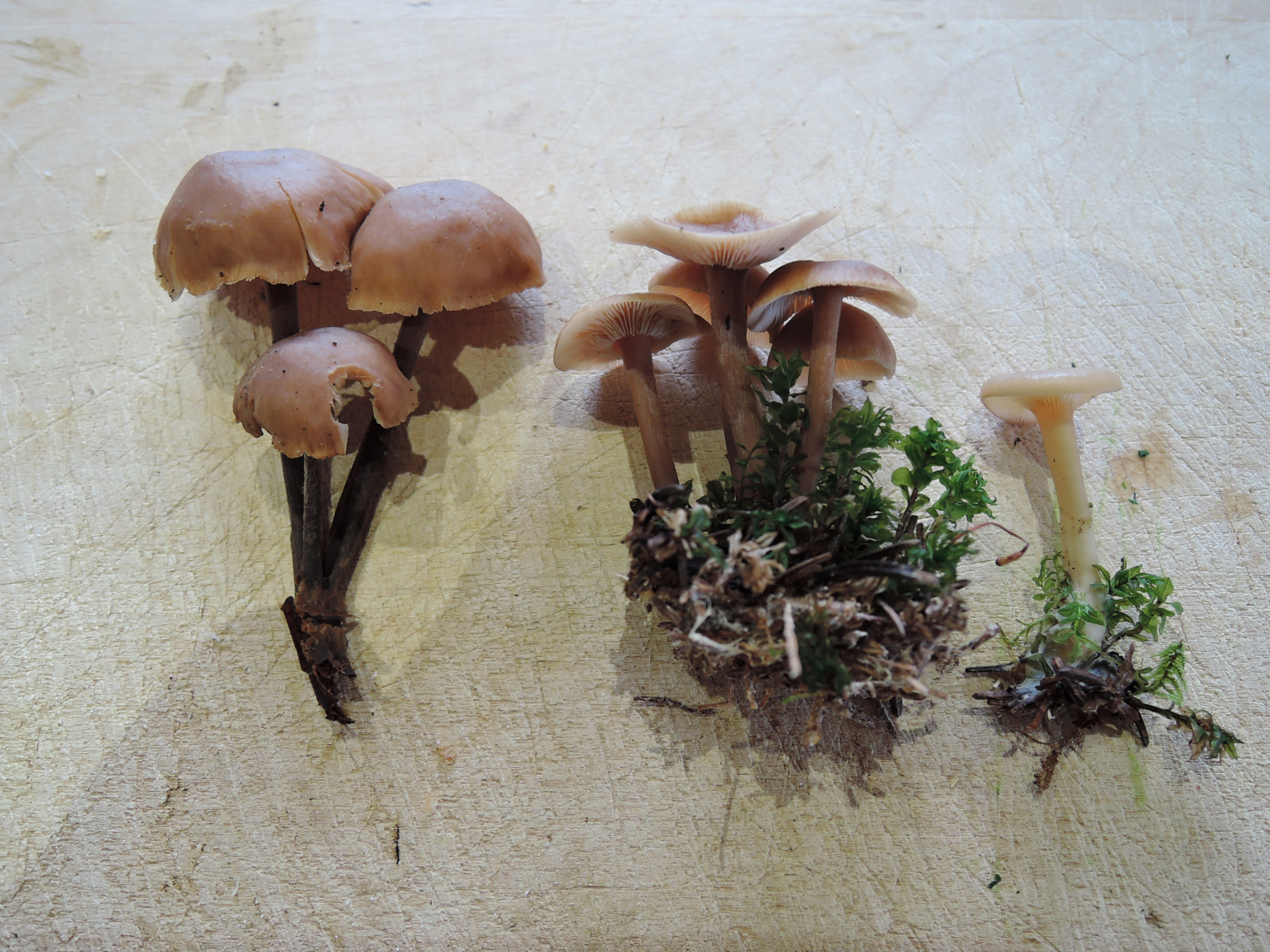 7. Der Linke ist denke ich kein Täubling, auch wenn ich die Schwarz- und Weißtäublinge nicht gut kenne. Richtig gemilcht hat er nicht, habe ihn darauf aber leider nicht genau getestet. Rußbrauner Schneckling scheint identisch. Der Megacollybia platyphylla scheint zu passen.