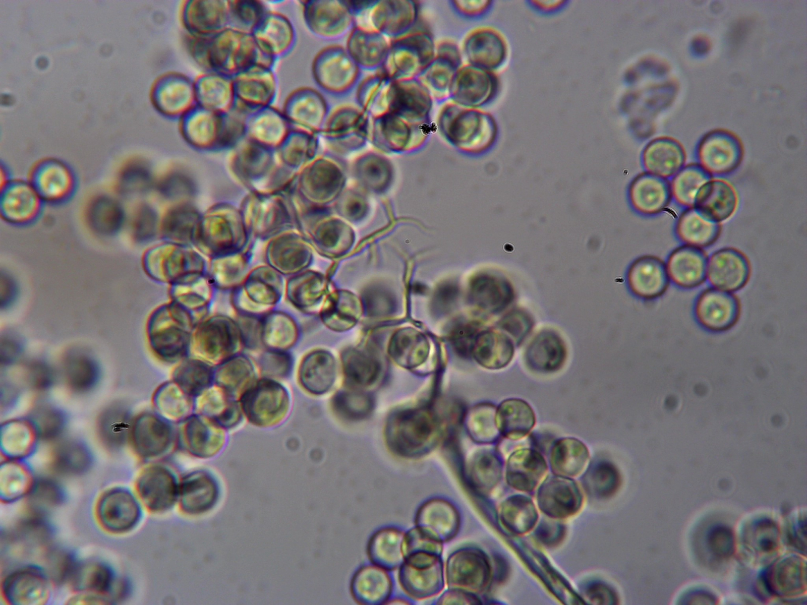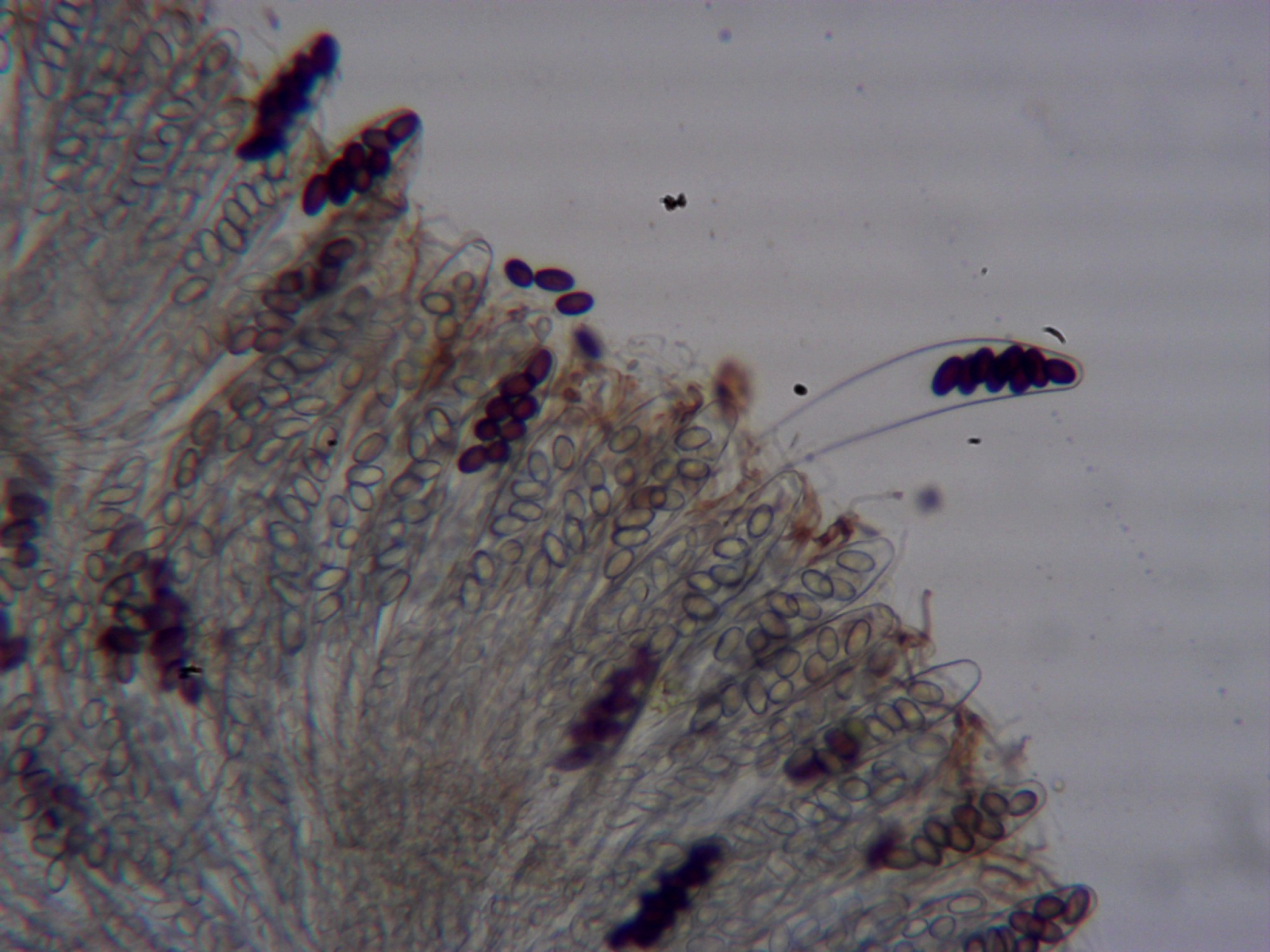 Unter dem Mikroskop zeigen sich die schönen 8sporigen Asci.