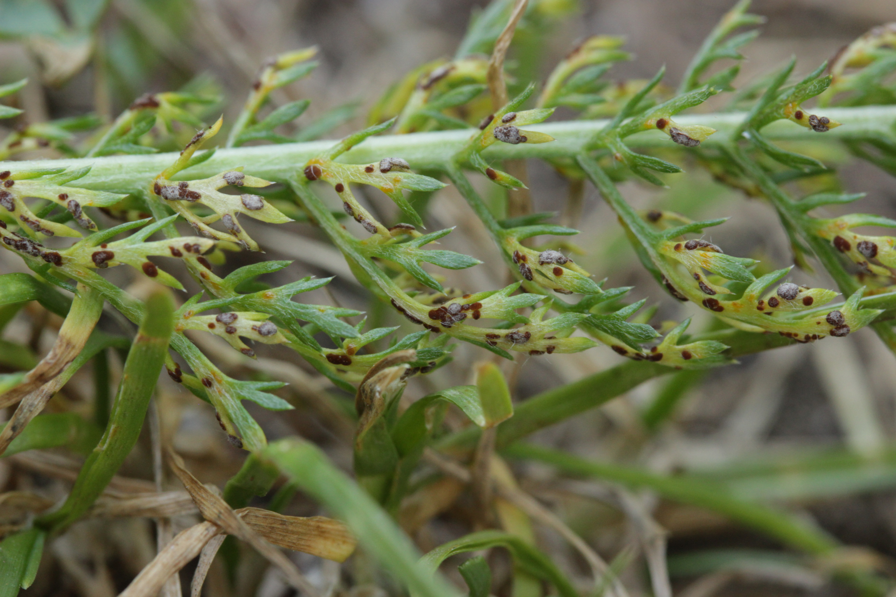 ich hatte lange Zeit große Schwierigkeiten mit der Unterscheidung der beiden Roste. Das mit der Anzahl von Zellen ist ja leider nicht immer so eindeutig und wenn man sich dann mal 50 Sporen anschaut, kriegt man halt irgendeine Verteilung, die mal mehr oder weniger in die eine odere andere Richtung tendiert. Mittlerweile habe ich aber ein paar Funde gehabt, die Jule mir auch bestätigt hat. Was meiner Meinung nach gut hilft ist der Gesamteindruck aus Zellenzahl, der Spitze (aufgesetzt oder langsam ausgezogen) und der Verbreiterung des Stiels. Das ist dann zwar auch nicht so, daß man sich eine Teliospore anschaut und weiß, was Sache ist. Aber wenn man sich da mal ein Ensemble von Sporen anschaut und auf sich wirken läßt, hat man meistens schnell einen passenden Gesamteindruck.