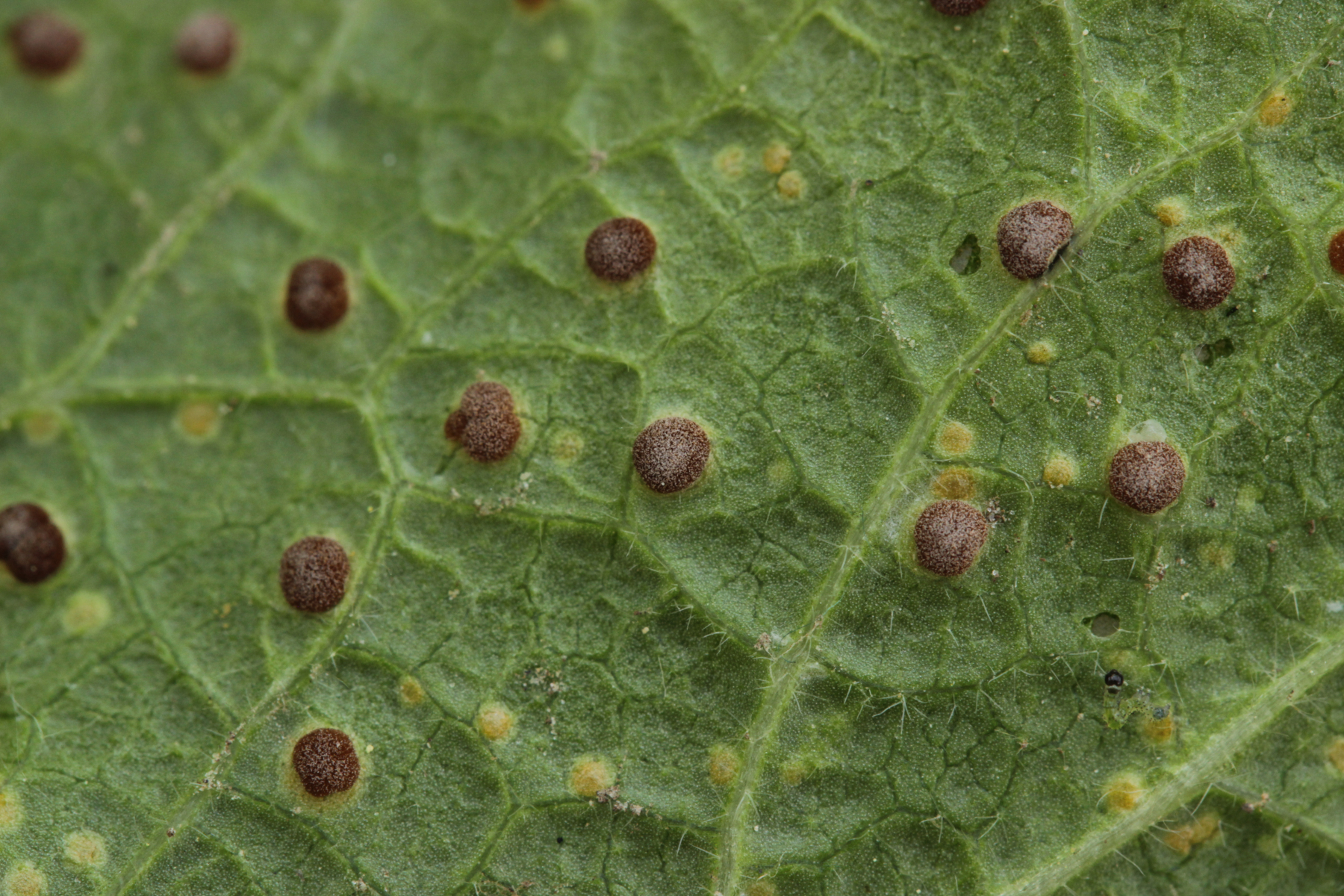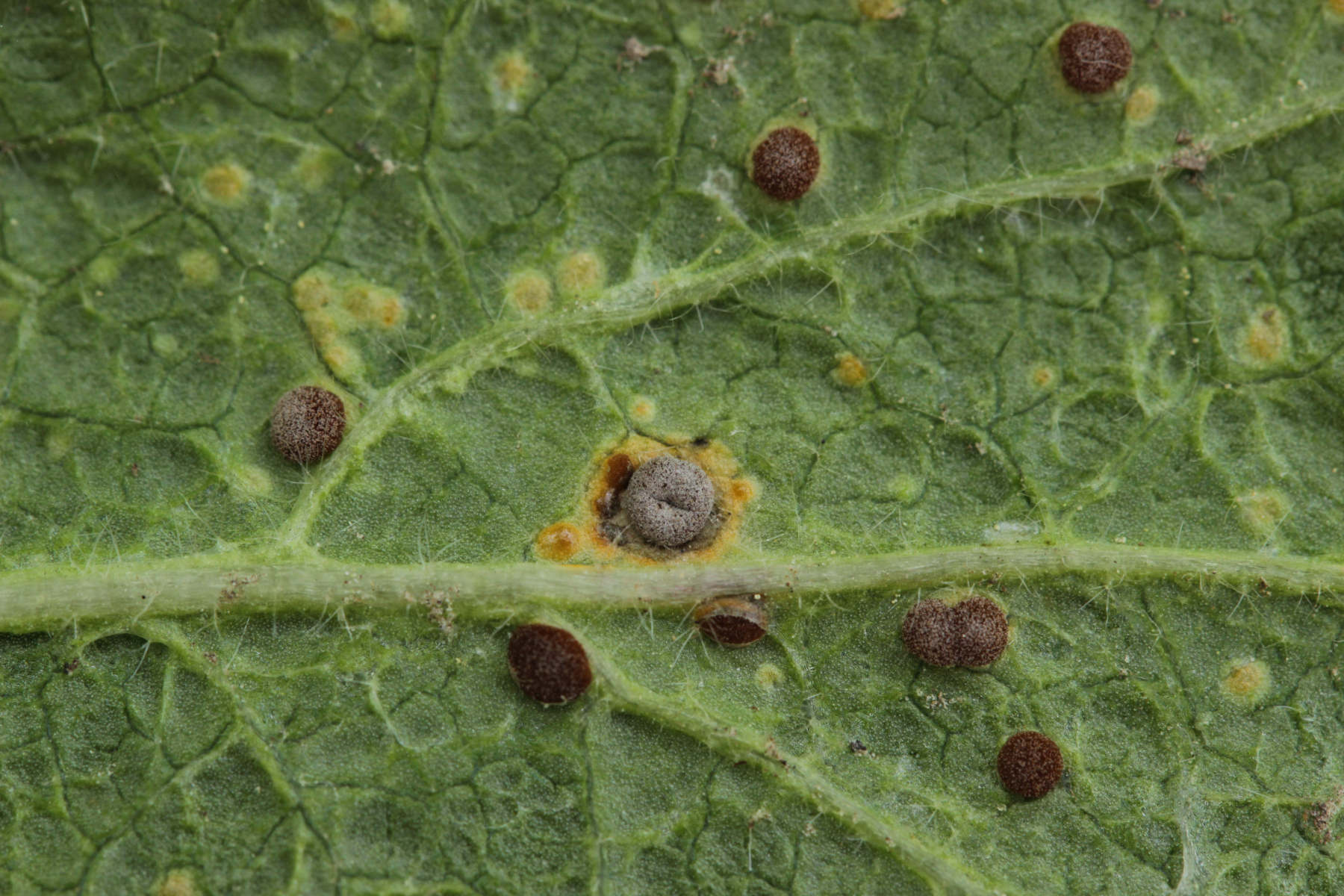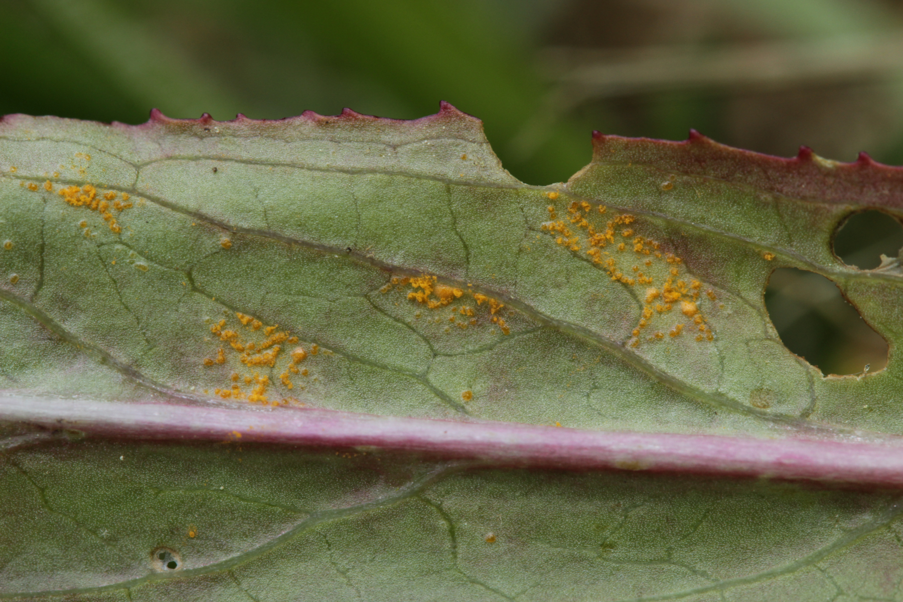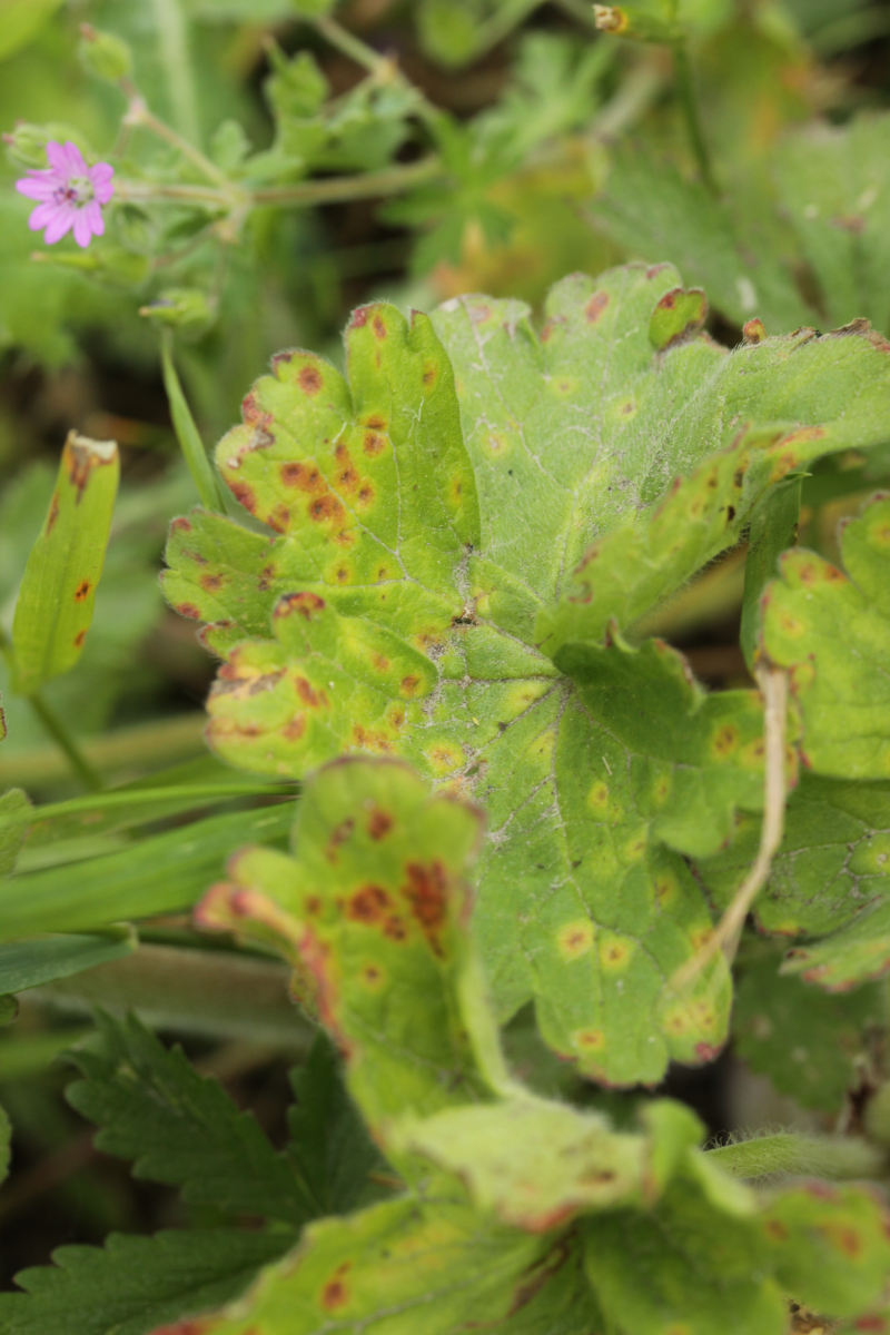 1. Als ich die Blattflecken auf Ranunculus repens sah, war mein erster Gedanke eine Entyloma. Erst als wir nach einiger Zeit ein Blatt umgedreht hatten, stellte sich raus, daß es ein Rost ist: Aecidium ranunculi-acris. Dies veranlaßte Hans dann zu dem Bonmot, daß Phytoparasiten wie Frauen sein. Man müsse schon aus der Entfernung erkennen, wie sie von der anderen Seite aussehen