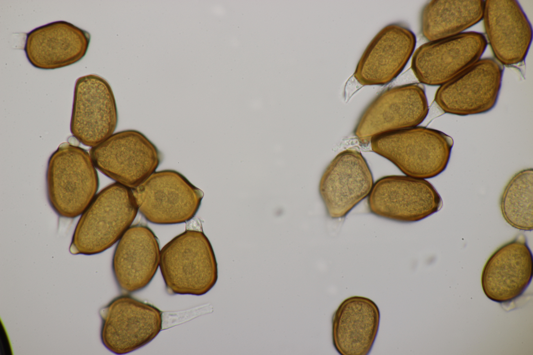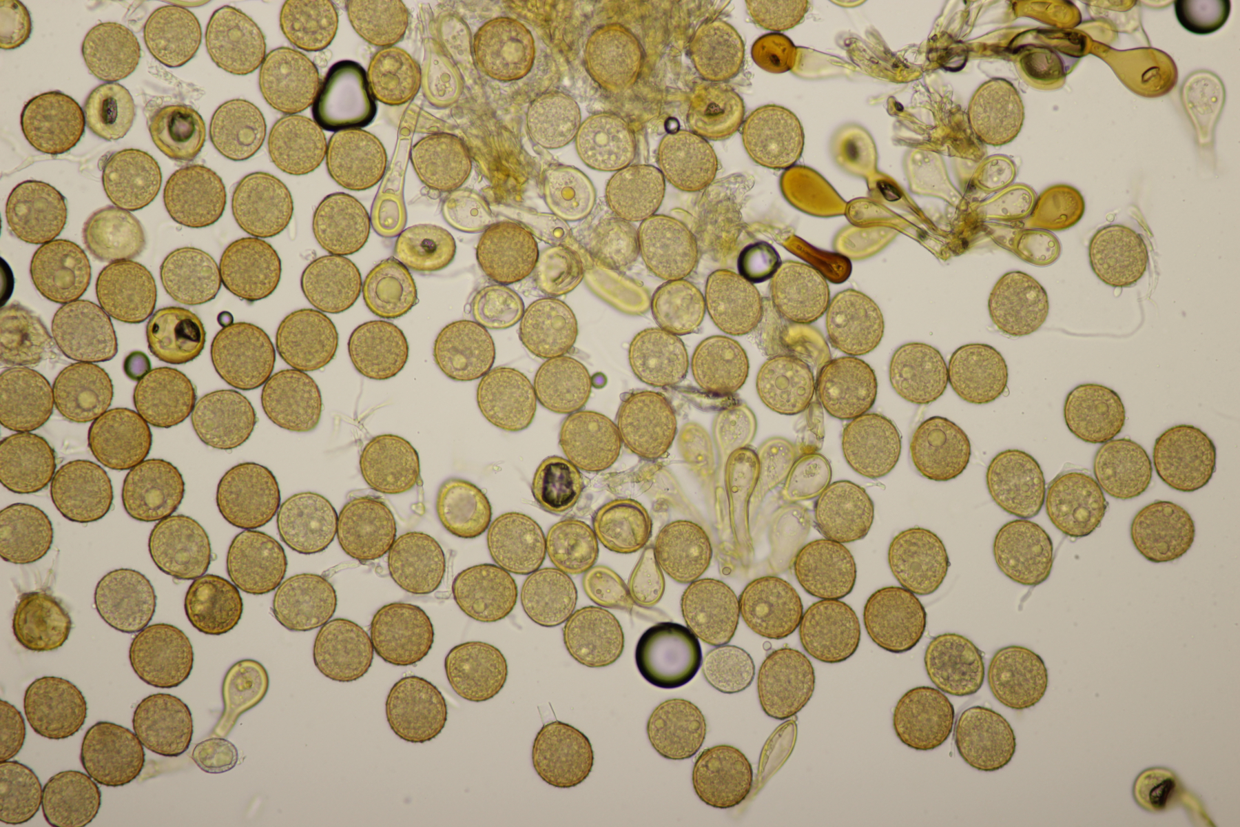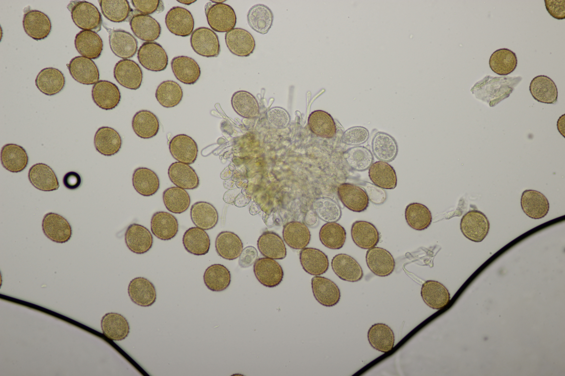 Im Prinzip kann man hier mikroskopisch anhand des Sporenornaments auch zur genauen Art gelangen, aber da bin ich mangels Erfahrung gescheitert. Außerdem will der Schlüssel wissen, ob der Pilz im Frühjahr (April/Mai) oder im Frühsommer (Mai/Juni) auftritt. Das hilft bei Funden im Mai natürlich viel