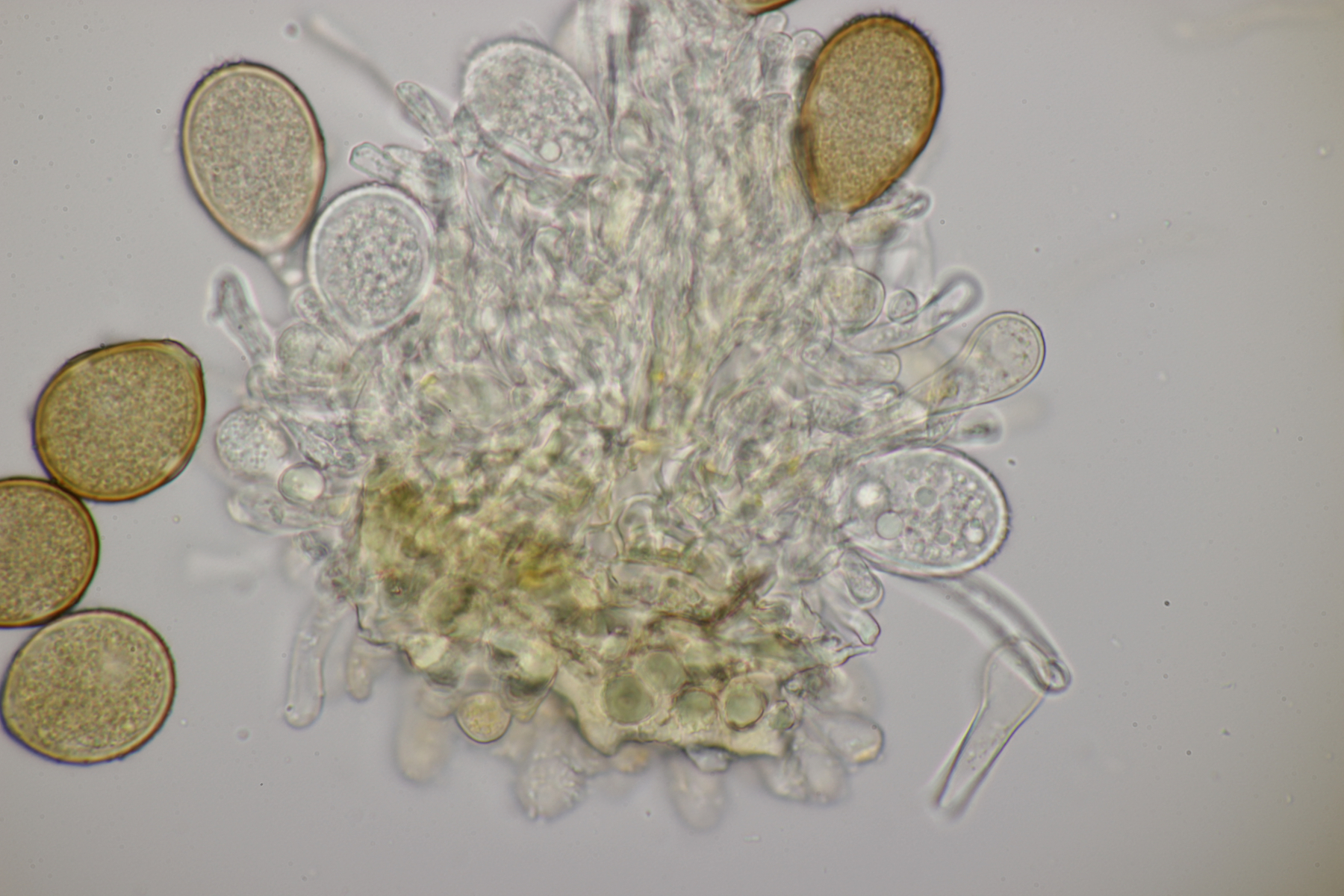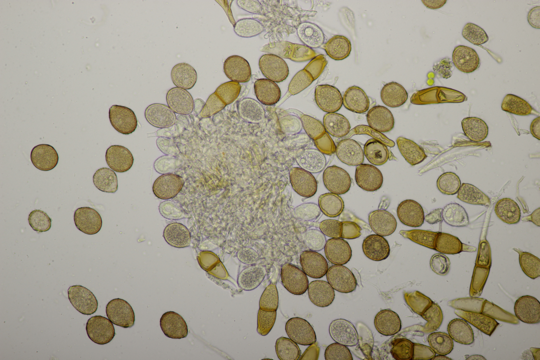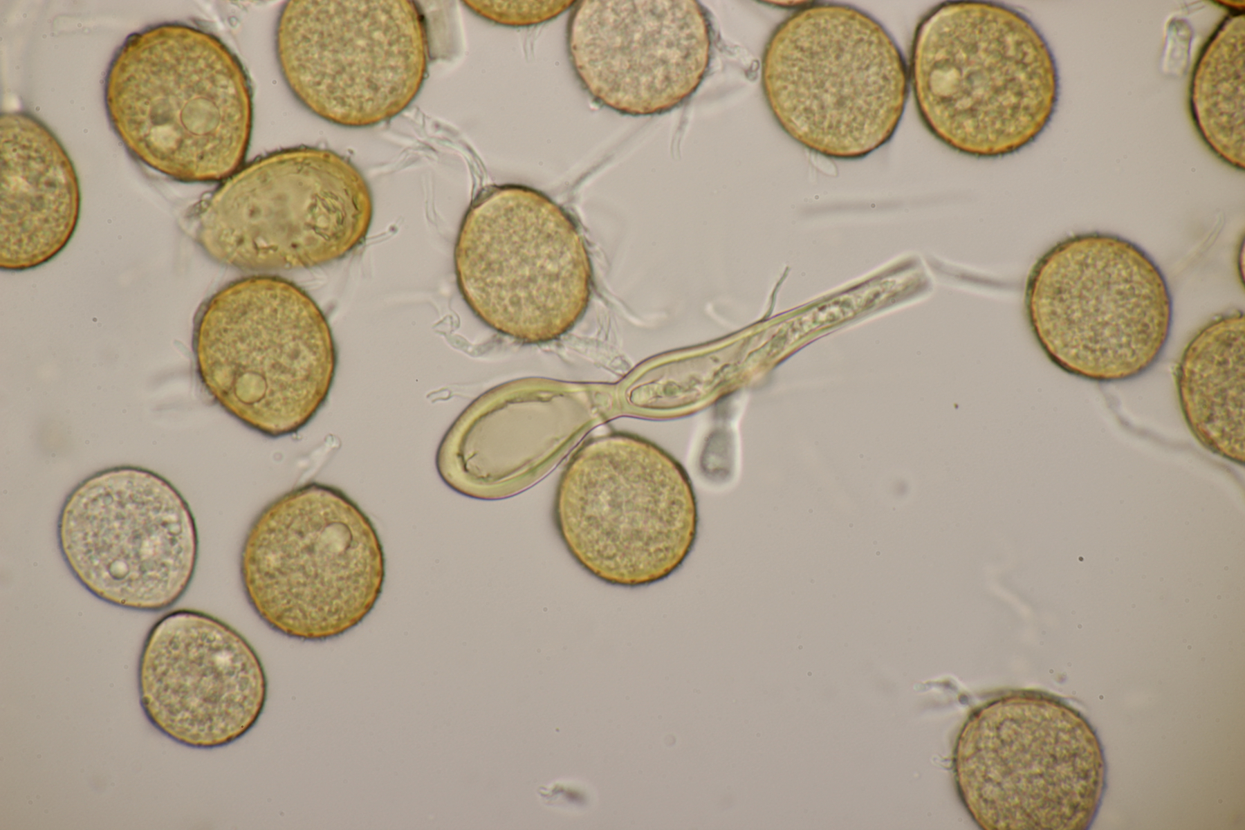 Im Prinzip kann man hier mikroskopisch anhand des Sporenornaments auch zur genauen Art gelangen, aber da bin ich mangels Erfahrung gescheitert. Außerdem will der Schlüssel wissen, ob der Pilz im Frühjahr (April/Mai) oder im Frühsommer (Mai/Juni) auftritt. Das hilft bei Funden im Mai natürlich viel