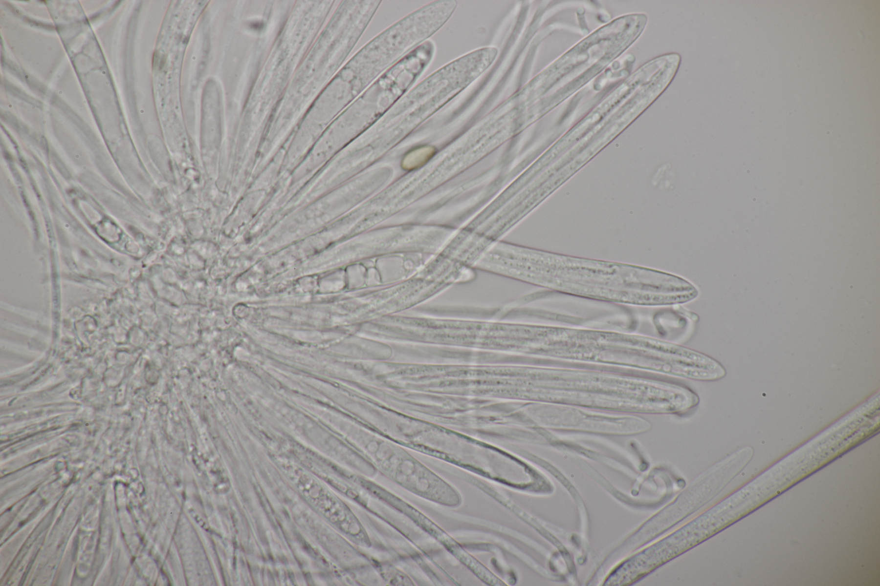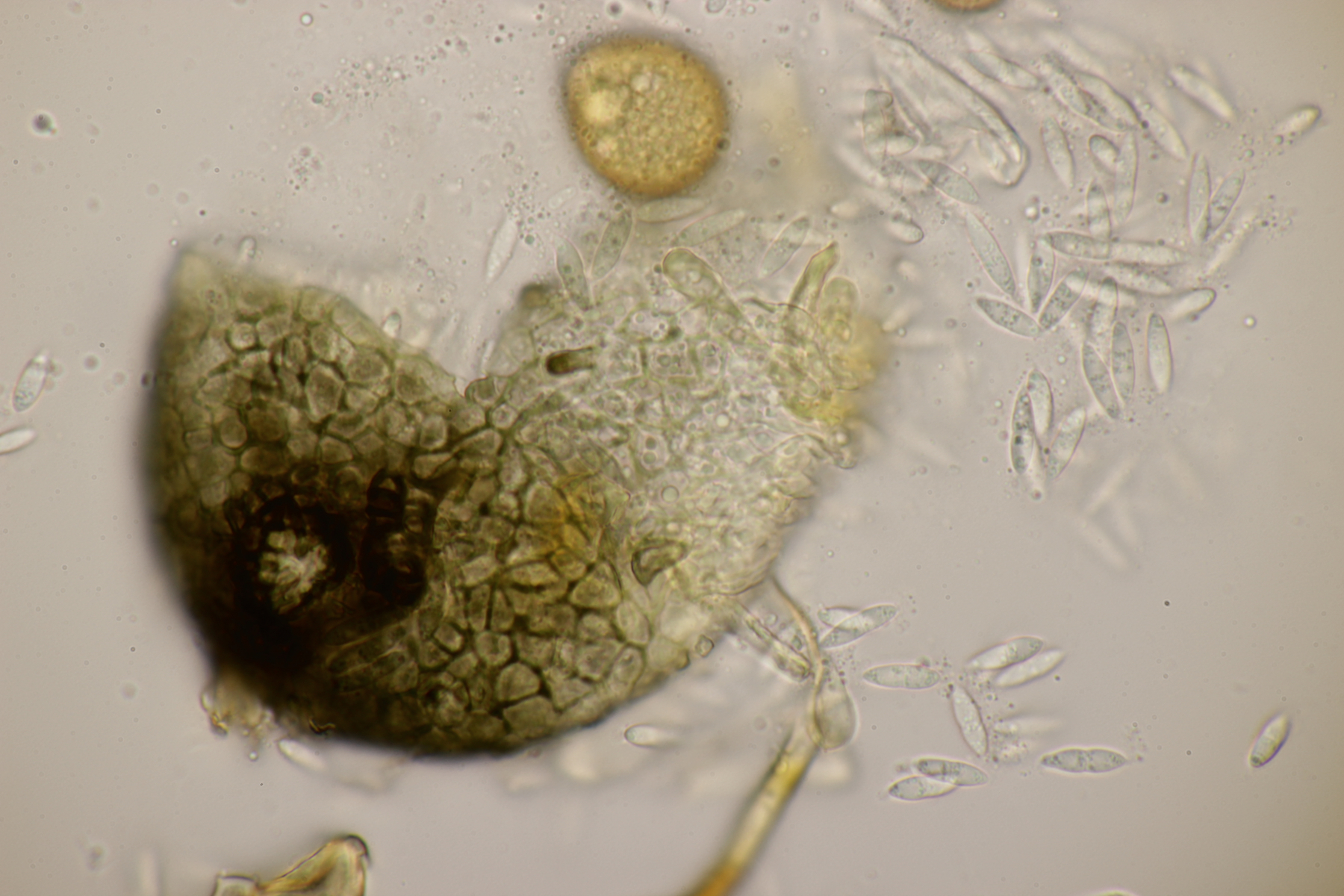 8. Unterwegs hat Hans mir dann auch noch eine Orbilia in die Hand gedrückt. Die habe ich dann mikroskopiert und Hans hat sie auf Orbilia xanthostigma getauft.