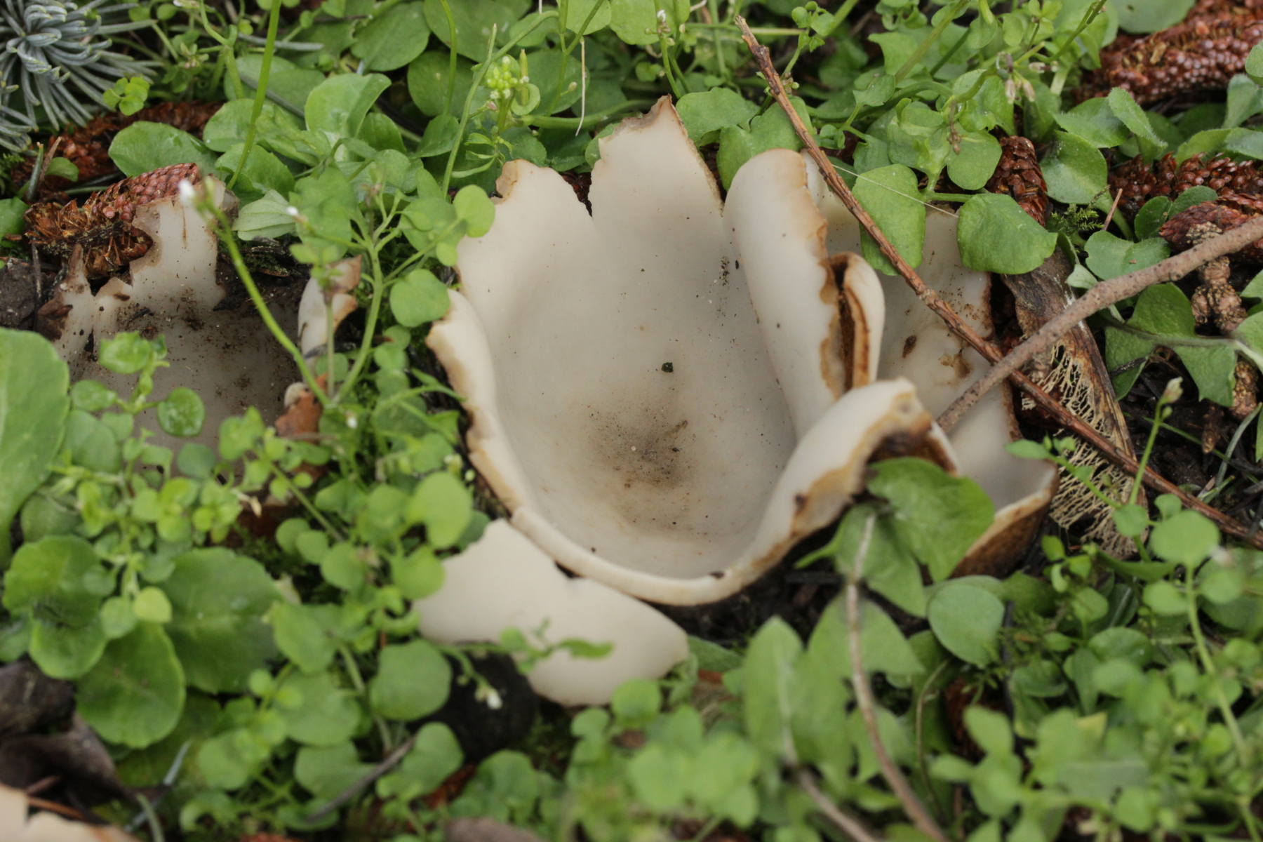 1. An totem Rubus fruticosus agg. fanden sich hübsche weiße Becherchen. Leider kann ich gerade nicht alle Mikrobilder eindeutig meinen Funden zuordnen, deshalb zunächst mal nur die Bilder, die sicher zu diesem Becher gehören