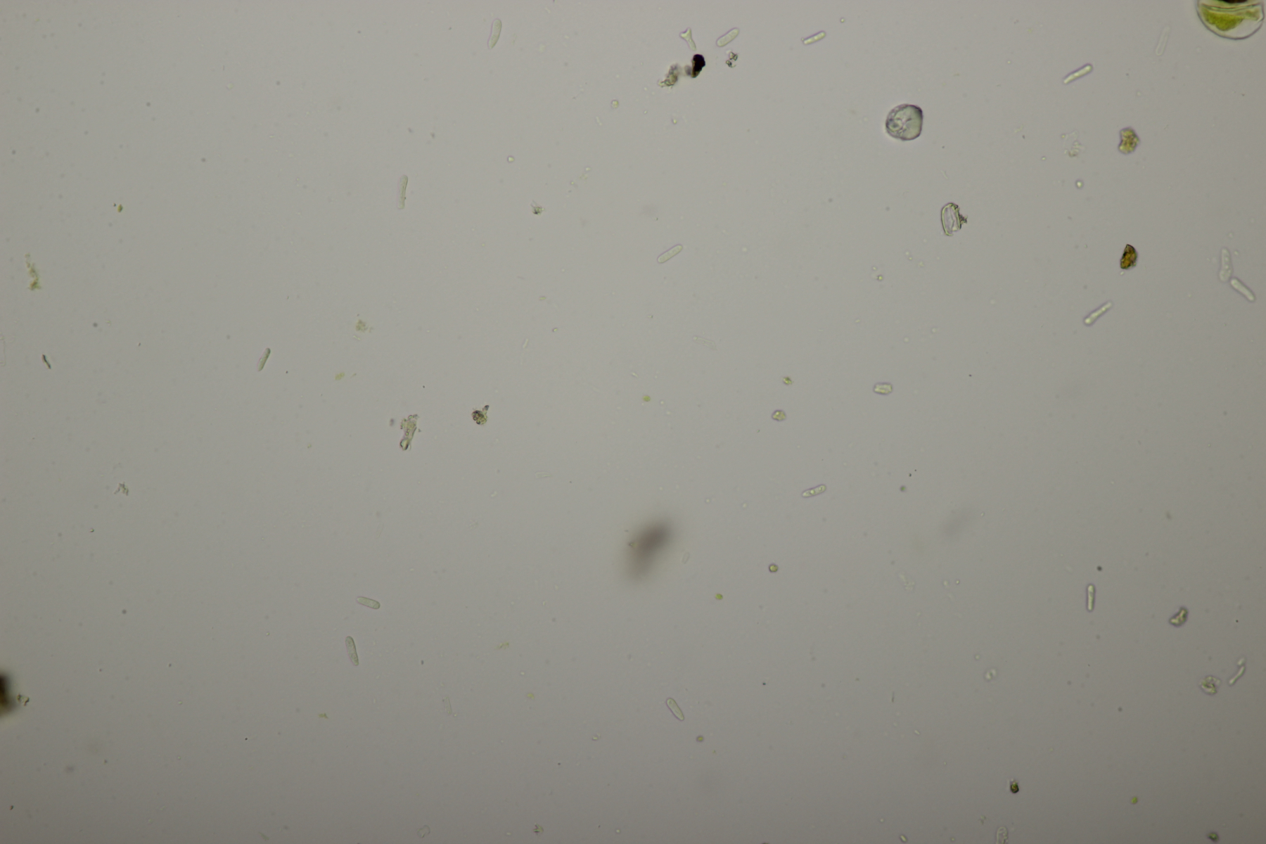 vor ein paar Tagen hatte Ralf G. auf Facebook kleine, weiße Glibberpunkte auf einem Holzstückchen präsentiert, die er in Viersen auf der Süchtelner Höhe gefunden hatte und bei denen er im Mikroskop nur Sporen über Sporen gesehen hat. Ich hatte ihm angeboten, daß er mir das gute Stück gerne mal übergeben kann, was er dann auch bei der gemeinsamen Exkursion in Mönchengladbach am Sonntag tat. Mit dem Mikroskop zeigte sich dann schnell, daß er hier (mal wieder) einen absoluten Glücksgriff getätigt hat, denn es handelt sich um Sirobasidium albidum, einen Heterobasidiomyceten, bei dem die runden Basidien in Ketten gebildet werden, was unterm Mikro sehr hübsch aussieht. Dazu kommt noch, daß der Pilz bis jetzt in Deutschland erst dreimal nachgewiesen wurde. Das ist aber nicht verwunderlich, weil so kleine Pilze, die bei Trockenheit bis zu Unkenntlichkeit zusammenschrumpeln natürlich schnell übersehen sind.
