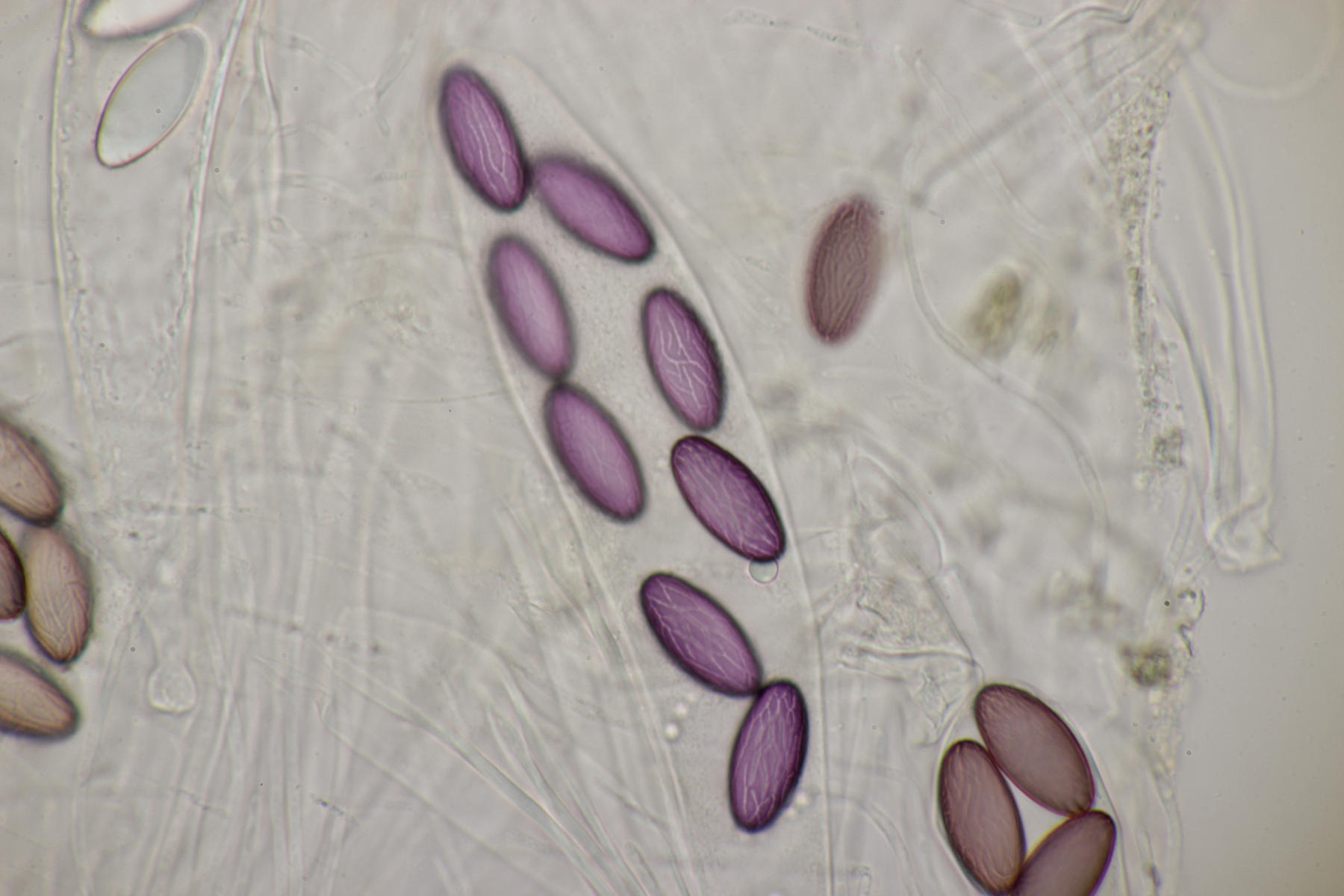 Sporengröße (31-34) µm x (19-22) µm, Asci 16-sporig