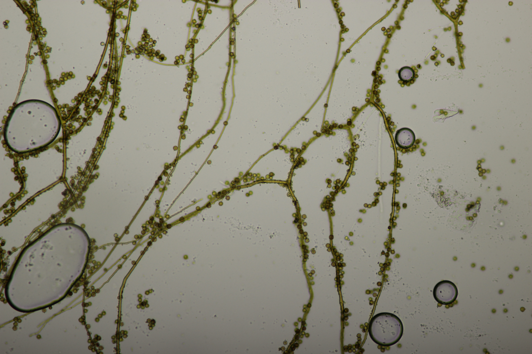 9. Mehltau auf Weide. Vom Blatt her nicht Salix caprea, womit der Mehltau Erysiphe adunca sein müßte. Dafür sind die Anhängsel aber recht kurz und sie standen auch deutlich in eine Richtung ab statt äquatorial.