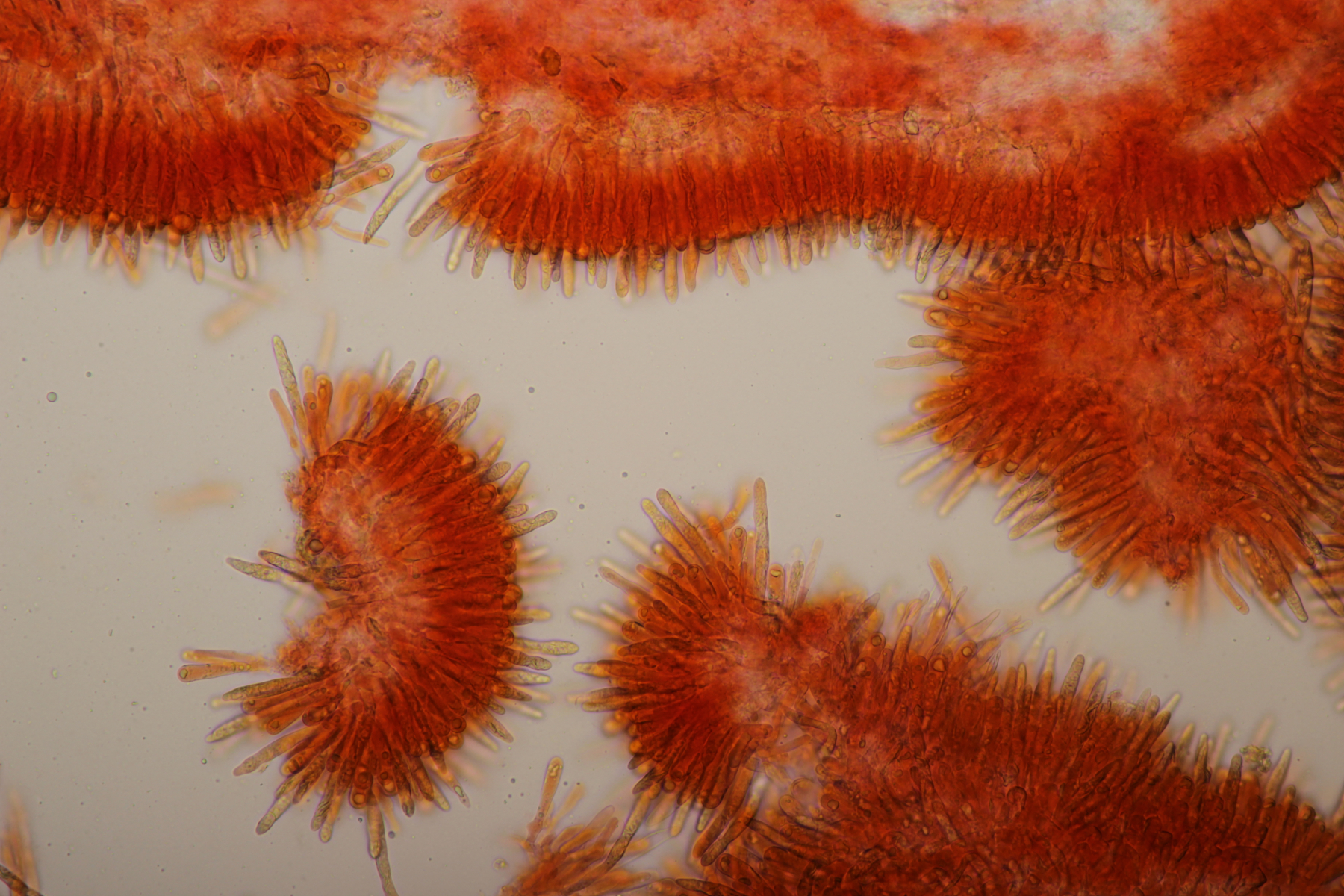 1. Paxillus sp. unter Birke. Ich hab bei meinen Eltern einen Sporenabwurf gemacht (leider kein Foto davon). Das war dann ein typisches Rostpilz-Uredien-braun. Aber ob das jetzt rot genug war für P. cuprinus? Der Abdruckk blieb bei meinen Eltern und ich hab dann zu Hause versucht, noch mal mehr Sporen zu bekommen um auch mikroskopisch reinzuschauen. Das sah heute morgen noch nicht wirklich vielversprechend aus, aber mal schauen, ob sich im Mikro dann doch noch Sporen finden.