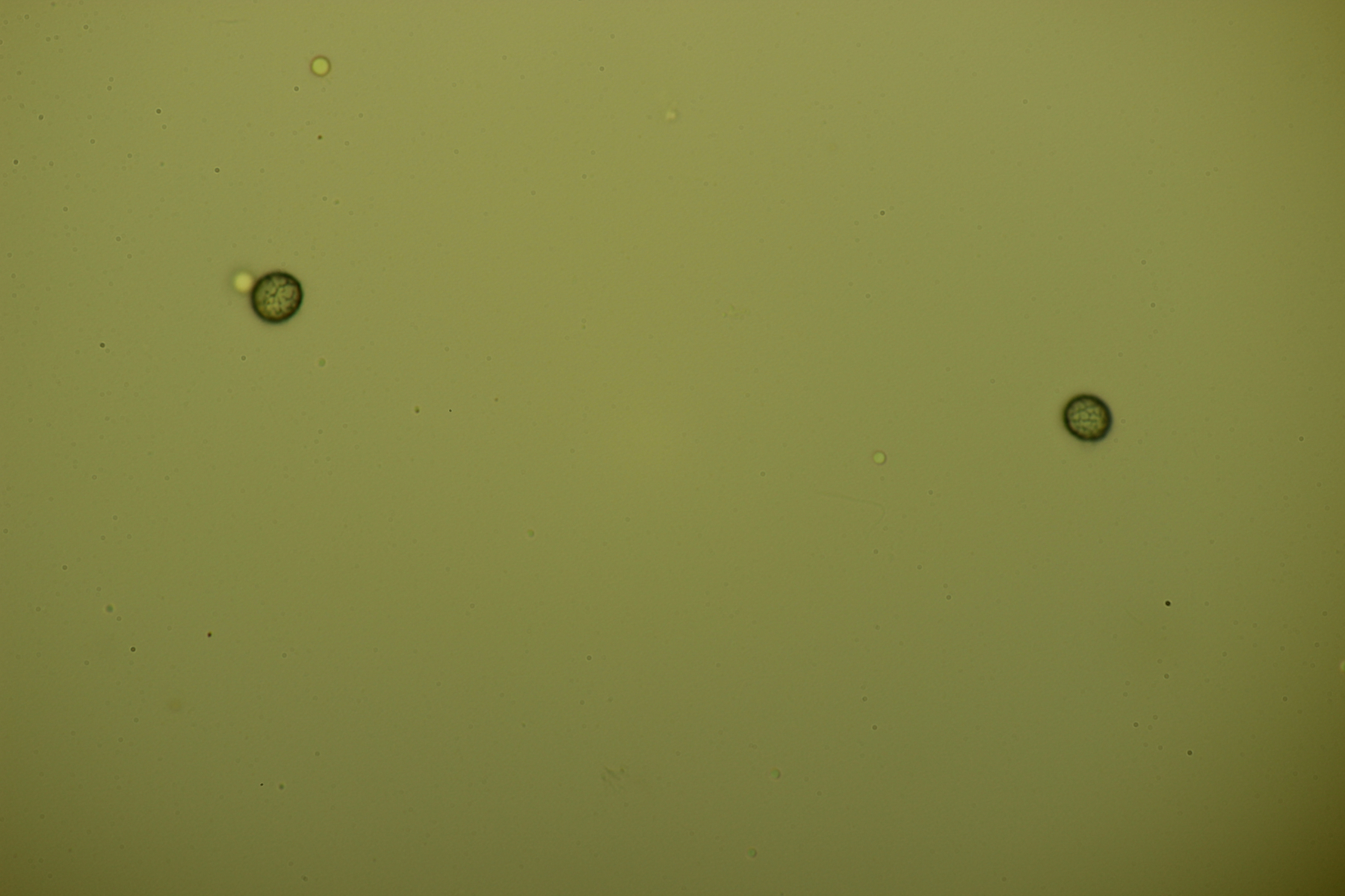 8. Und dann hat meine Mutter mir noch von ihrem Zitronenbaum erzählt, wo die Blätter abtrocknen und es kleine schwarze Beläge gibt. Unterm Mikroskop zeigten sich dann einerseits Alternaria-Sporen, andererseits auch diese Konidien hier. Viellecht hat da ja jemand eine Idee zu?