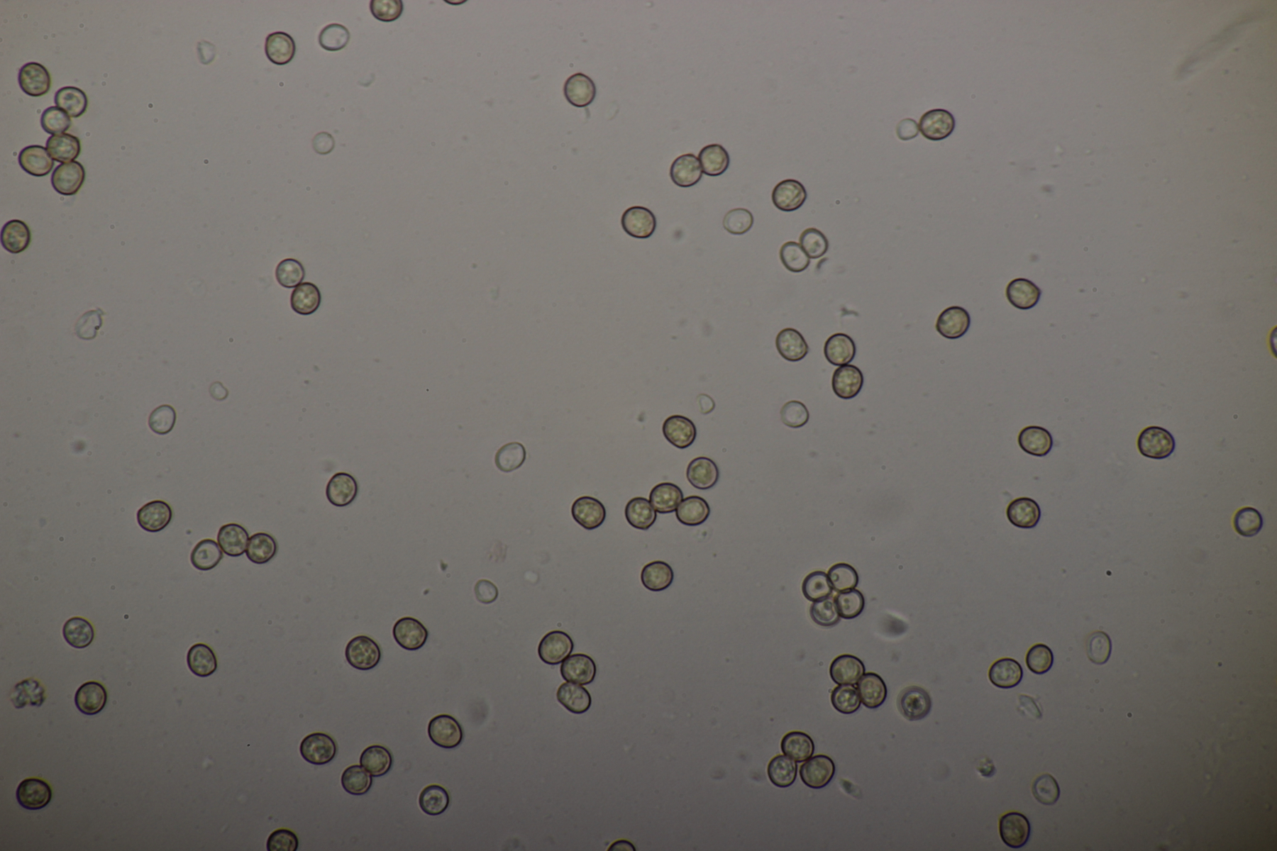 Sporengröße (6.1 +- 0.3) µm x (5.1 +- 0.3) µm