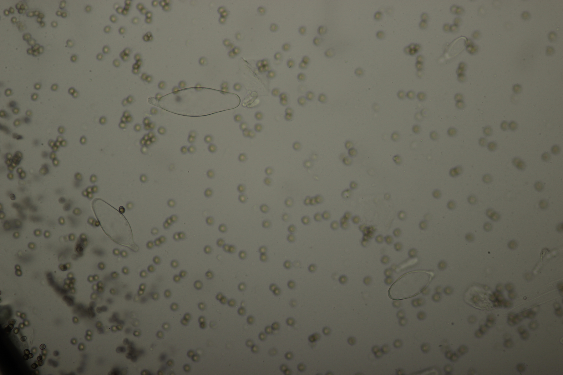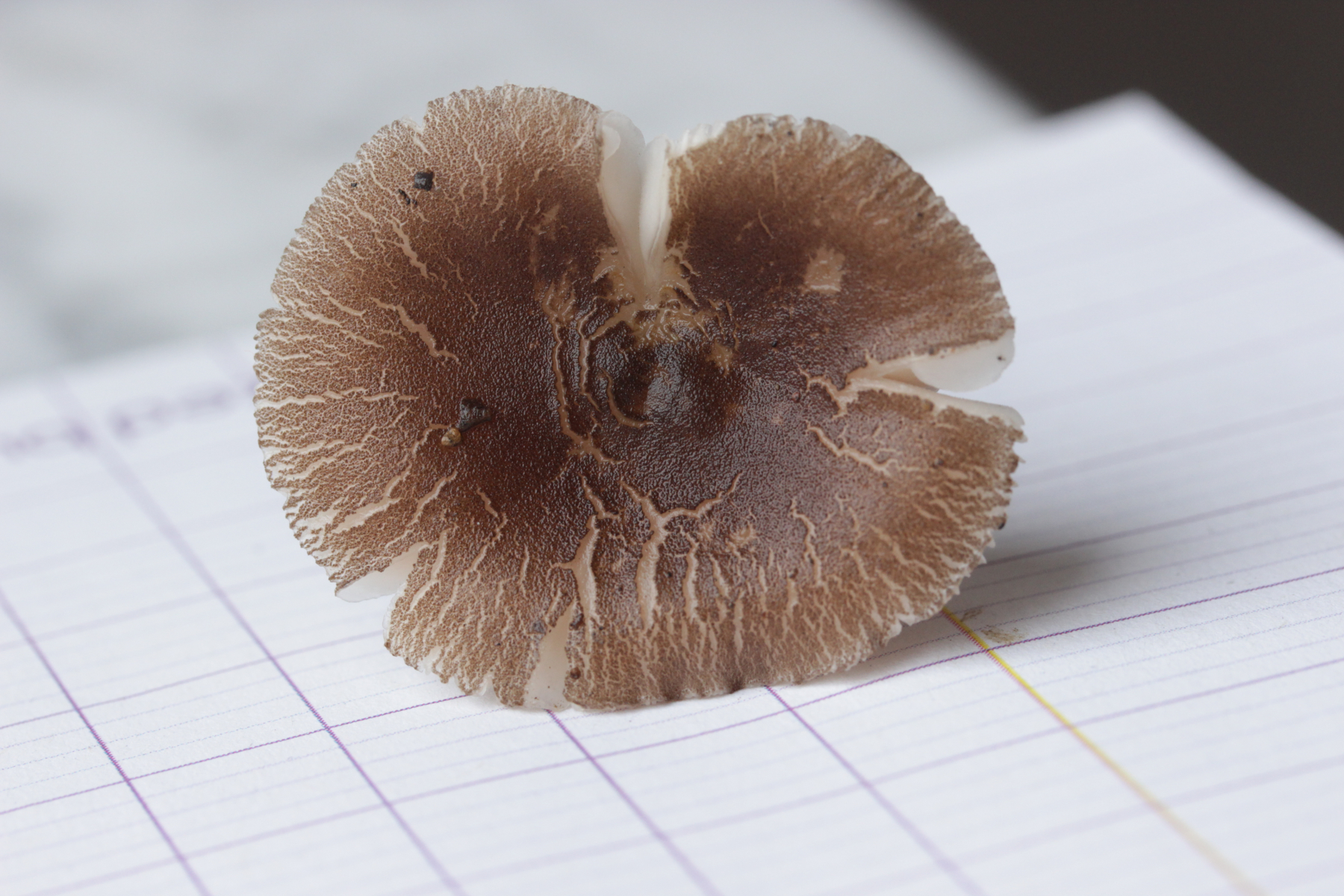 4. Russula sp., Sporenpulverfarbe Ib, Sporengröße (8.1 +- 0.4) µm x (6.6 +- 0.4) µm. Lamellen sehr weich und wenig spröde.